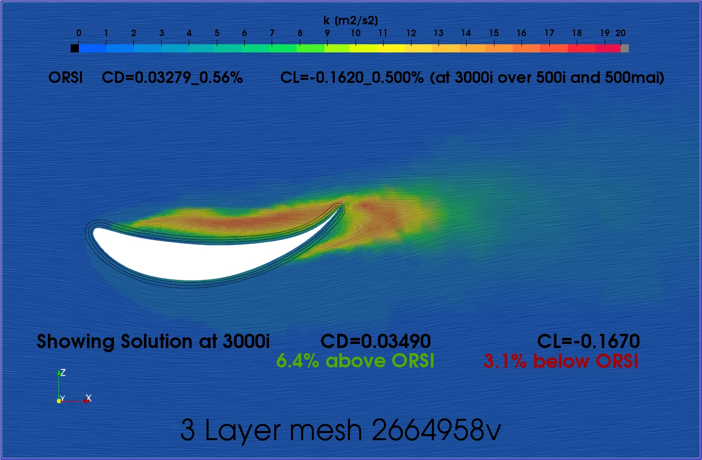 Because I am investigating the effect between 1 and 3 layer meshes and the biggest question I have is whether we are properly calculating properly the boundary layer turbulent area outside that single layer… The turbulence plots will show the turbulent area and as we can see the turbulent area is well outside even the prism cells of the 3 layer mesh (which I think is good if we are trying to justify 1 layer as a good replacement for 3 layers in some cases)… I should add a cell grid overlay to show the extent of the prism cells on the turbulence but it gets a little messy unless very zoomed in…