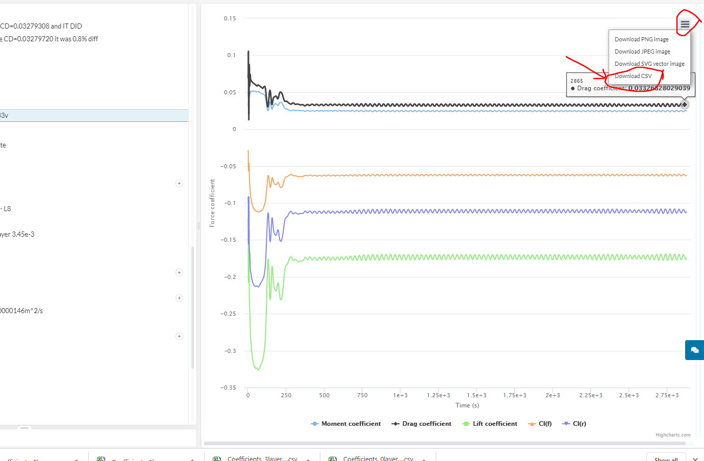 Then, on any plot in SimScale click on download csv…