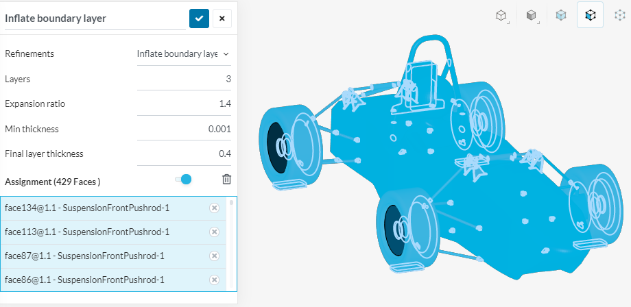 Im about to do my next mesh, would you recommend not adding boundary layers to small areas (suspension beams) ? i think the wheels need it but all the suspension parts, main hoop, motors might not be necessary to add.