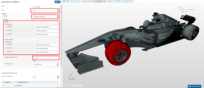 Thanks very much @pfernandez we are looking forward to have your help with our project, when applying the rotational boundary condition do we have to select every face that composes the wheel? and also do we have to apply a different boundary condition to each wheel? (front and rear)