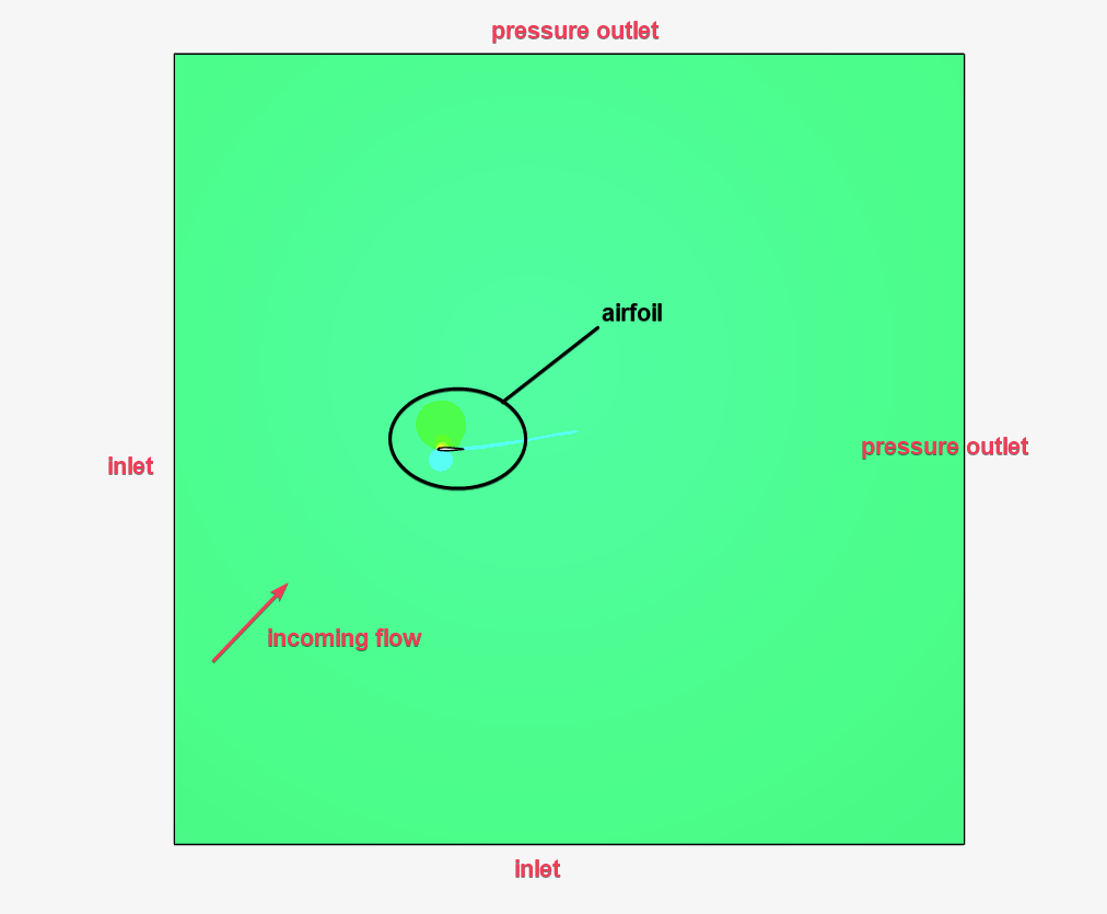 To apply the above methodology, preferably, we need to create a rectangular domain and assign two inlets and two pressure outlets as boundary conditions.
