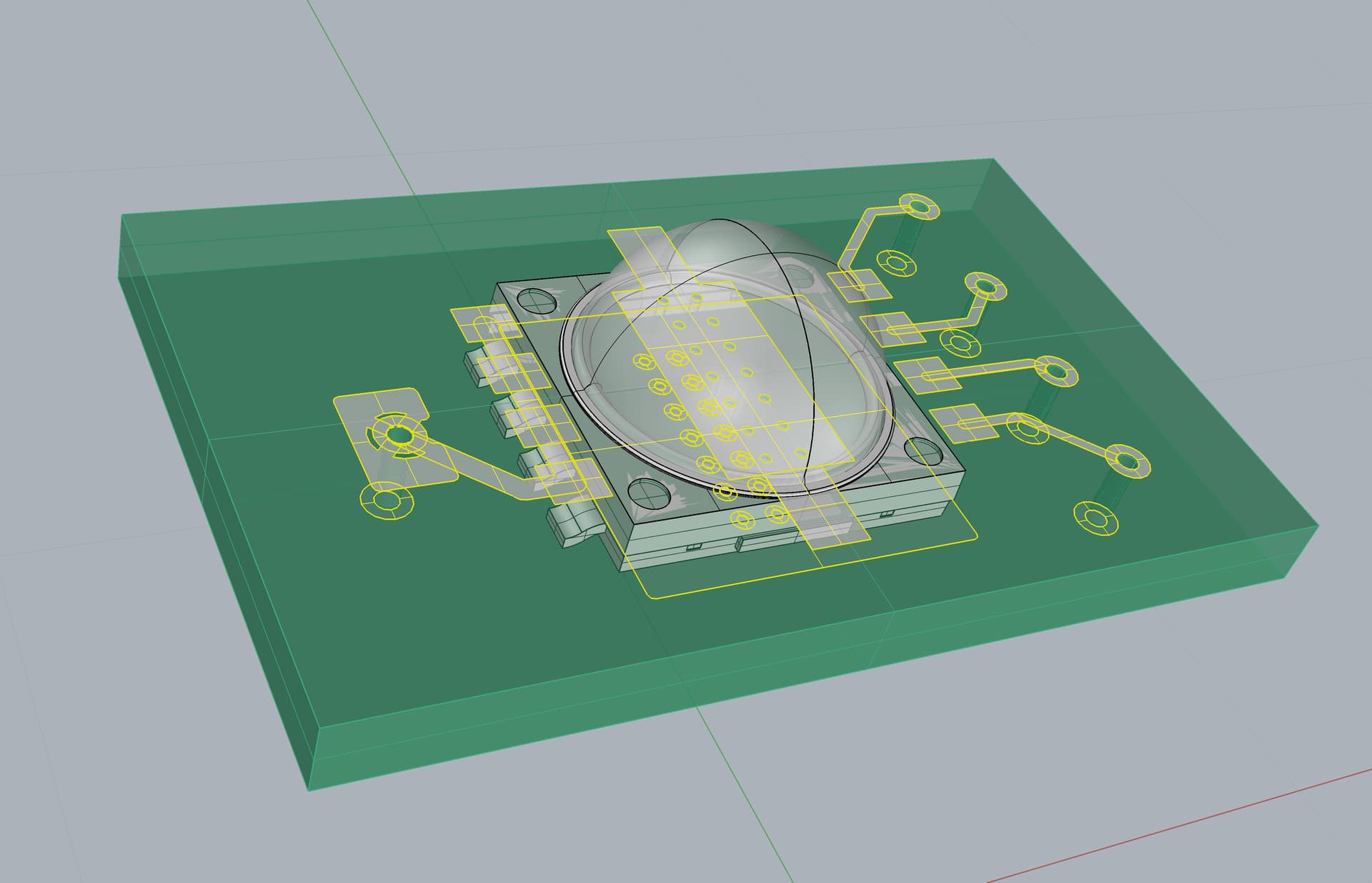 I modified the circuit models adding volume, and I moved the chip (LED) in the correct position.