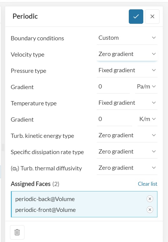 Hello everyone, I’m trying to apply translational periodic boundary conditions in 2 faces (front and back) using the Convective Heat Transfer simulation.