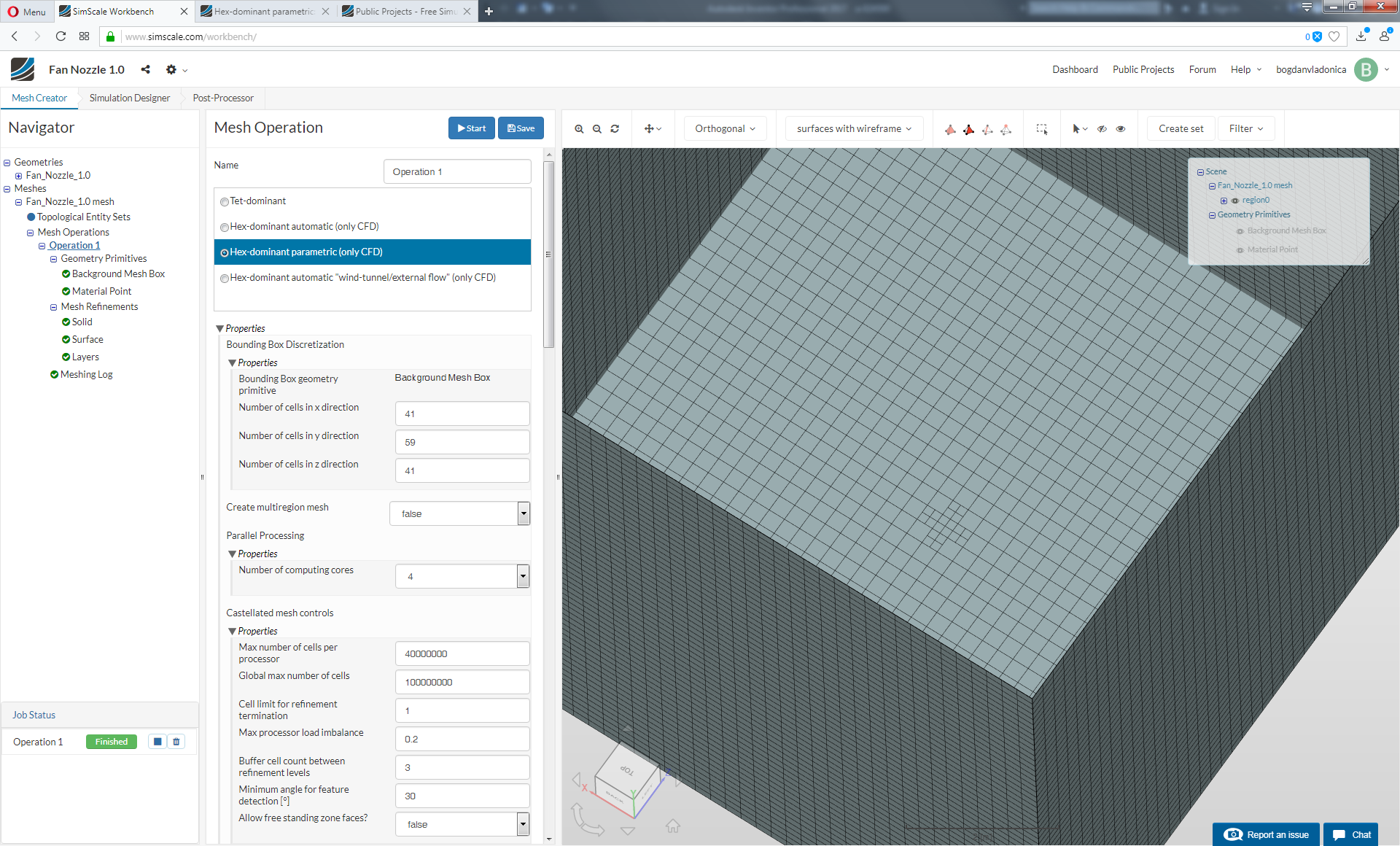 Thank you for your help so far. Indeed on your copied project the mesh of the nozzle is correct but the background mesh box is very small. I need at least 10x10 meters because of the size of the jet. I copied your project, changed the size of the background mesh box back to 10x10 meters and the result is the same as before, no mesh for nozzle. I’m understanding something wrong maybe?