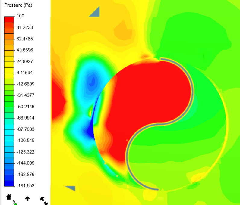 I am running a simulation for my Savonius Wind Turbine. After assigning the MRF rotating zone, and finished the simulation, the results that I obtained for pressure seems a bit strange. The pressure difference between the rotational zone and the outside of rotational zone is huge. Is this normal? Or something went wrong? Please help