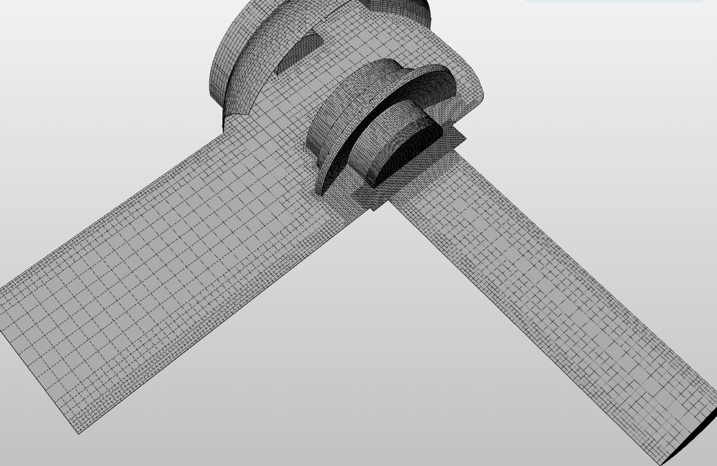 The complete internal flow domain was meshed using the ‘Snappy-Hex-Mesh’ on the SimScale platform. The resulting mesh ( flow domain only ) consists of approximately 0.4 million cells and is shown in the figure below.