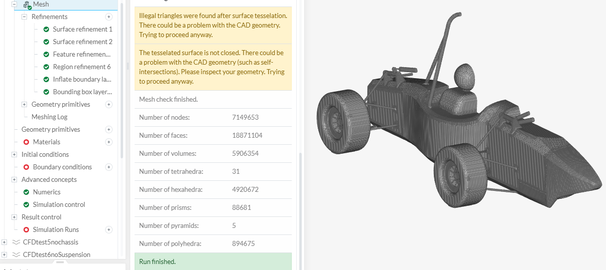 Then I proceeded to manually merge the STL files together (changing the names, no spaces, special characters etcâŚ) such as Front and Rear suspension as well as the main roll hoop (because they should all receive the level 7-8 mesh refinement) as one STL file so everything can be selected in one click. I also made a master STL file, as many others have done, and simply added the Aero features to this.