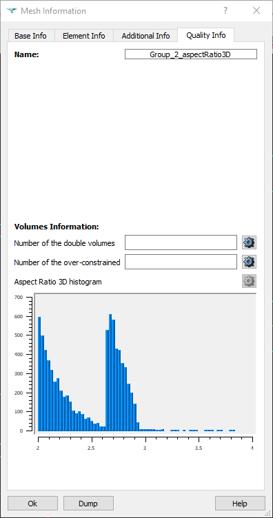 I think the histogram says that the mesh is of reasonable quality. However, to have a closer look into it I grouped all the volumes with an Aspect Ratio 3D greater than 2 and the histogram of it looks quite interesting… Let’s see it!