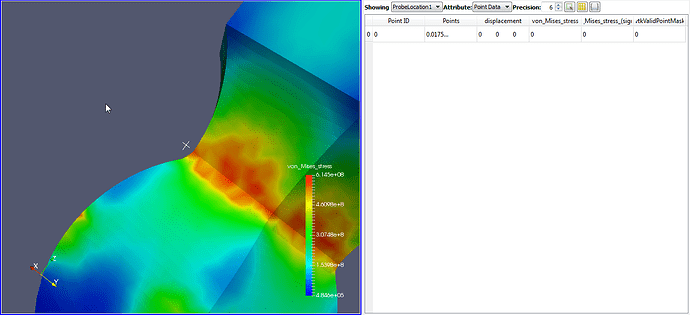 Hi @angkanh494, its a bit complicated if you want to query a set location but if you just want to query upon click, you need to import the surfaces of interest, and do as the above, otherwise you need to do a complex query where you go edit>find>nearest to>add location and then Paraview will find the and query the values of the nearest point to that location.