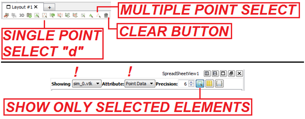 The second possibility is to use a multiple selection. This allows selecting more points at the same time. All relevant data will appear in the table window. However, readouts will be sorted according to nodes’ ID numbers (!). For greater number of points it’s difficult to identify which one was the last you selected. Also, you have to click “clear” button if you want to start afresh.