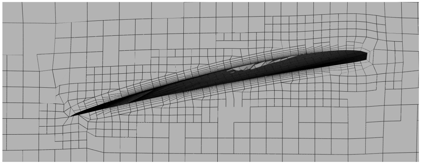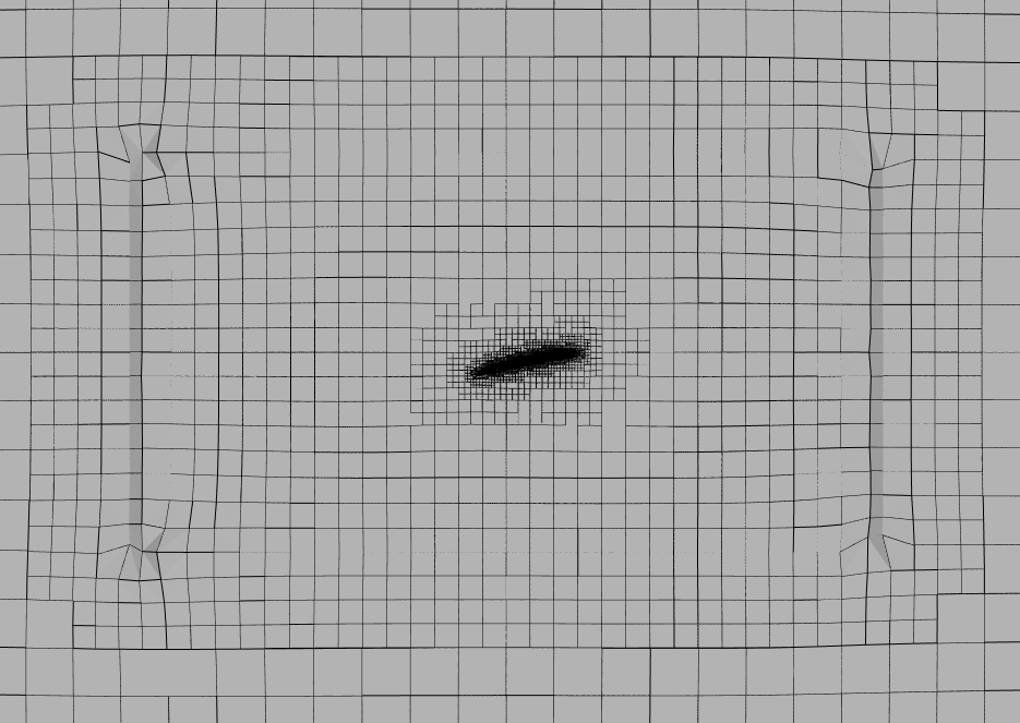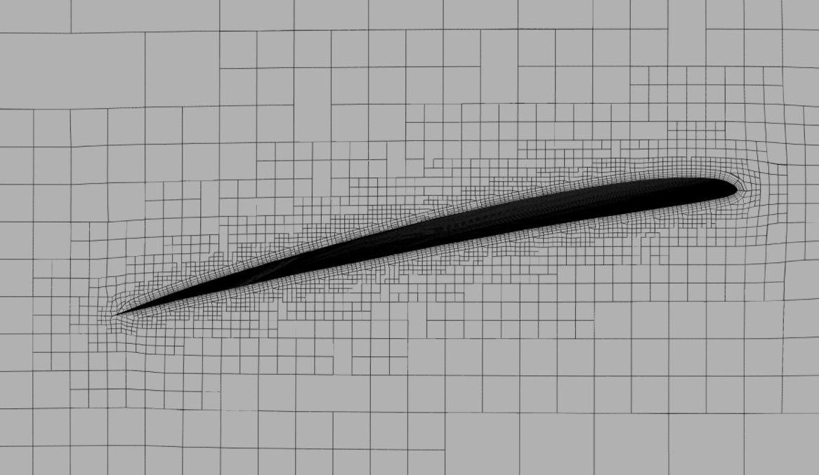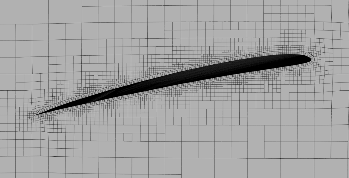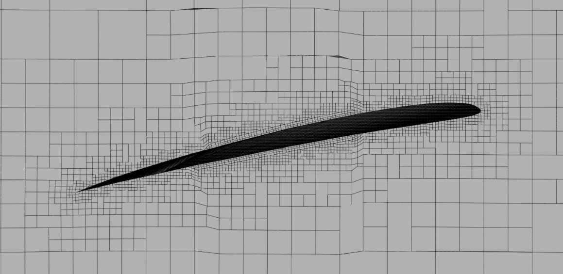 The problem with this mesh was that I didn’t manage to get any refinements around the leading and trailing edge. I know that feature refinement might be a good approach to solve this, the problem is that feature refinement seems to refine the edges of the rotation zone as well, which is very computationally wasteful.