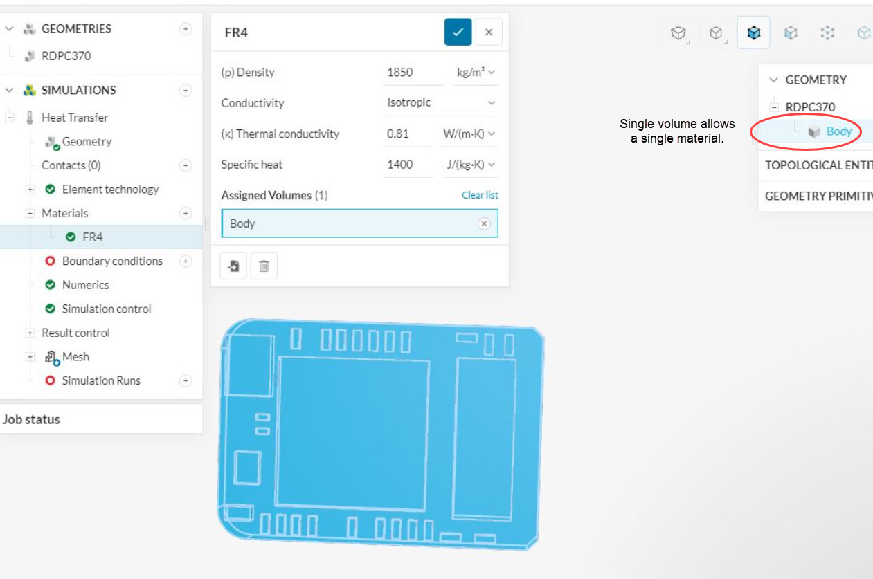 For example, the geometry used in the electronics box tutorial contains a total of 124 volumes, which can be assigned to different materials: