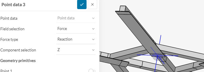 What I want is the reaction force in the vertical direction to know how much force the screws have to hold. On the “Result control” tab I created a solution field showing the reaction force and then some “data Points” also showing the reaction in the vertical direction (Z).