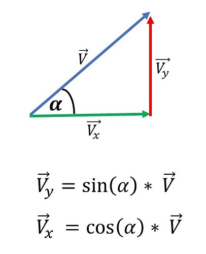You can upload the generic shape into your Workspace and vary the angle of attack by using trigonometric formulas (given below). Let’s say your angle of attack is 15° and the \vec{V} component 100 \frac{m}{s}: