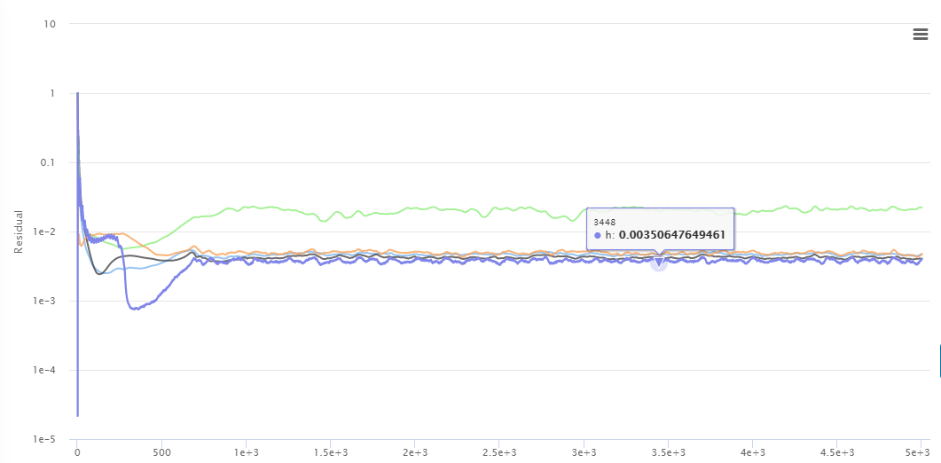 *I have ran the simulation with all the settings, but The residuals are saturating above 1e-3 and the domain values of couple of variables is fluctuating (I have tried making the mesh finer but it is of no use). PFA the snips below: