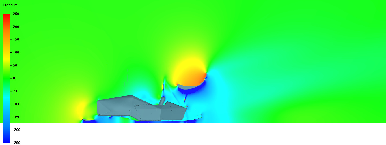 Thanks for your replies @jousefm, @Get_Barried The reason we have this modeled as a full car is so that we can use the same mesh for simulations that have changing yaw angles for the velocity. We changed the boundary conditions to a more conventional velocity inlet, pressure outlet , and ran the simulation. While the force and moments look more realistic, the post processor, both in simscale and paraview, show no changes in pressure distribution across the body of the car, so it is unclear if any data given from this simulation can be trusted. Would you guys have any insights?