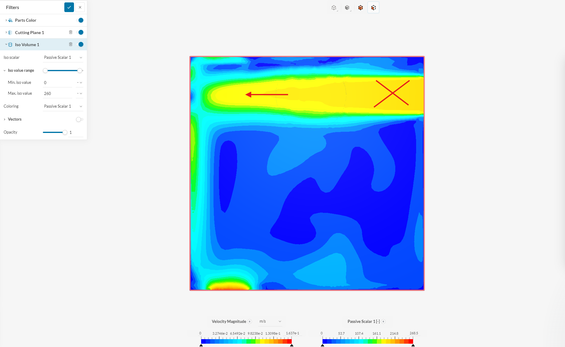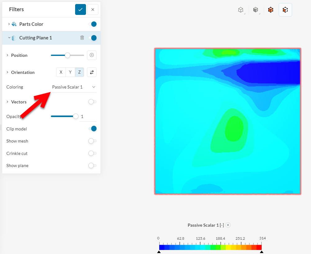 Hi @eaglechen, regarding your last question, could be because the definition of the coloring for the cutting plane is “Velocity” and not “Passive Scalar”?