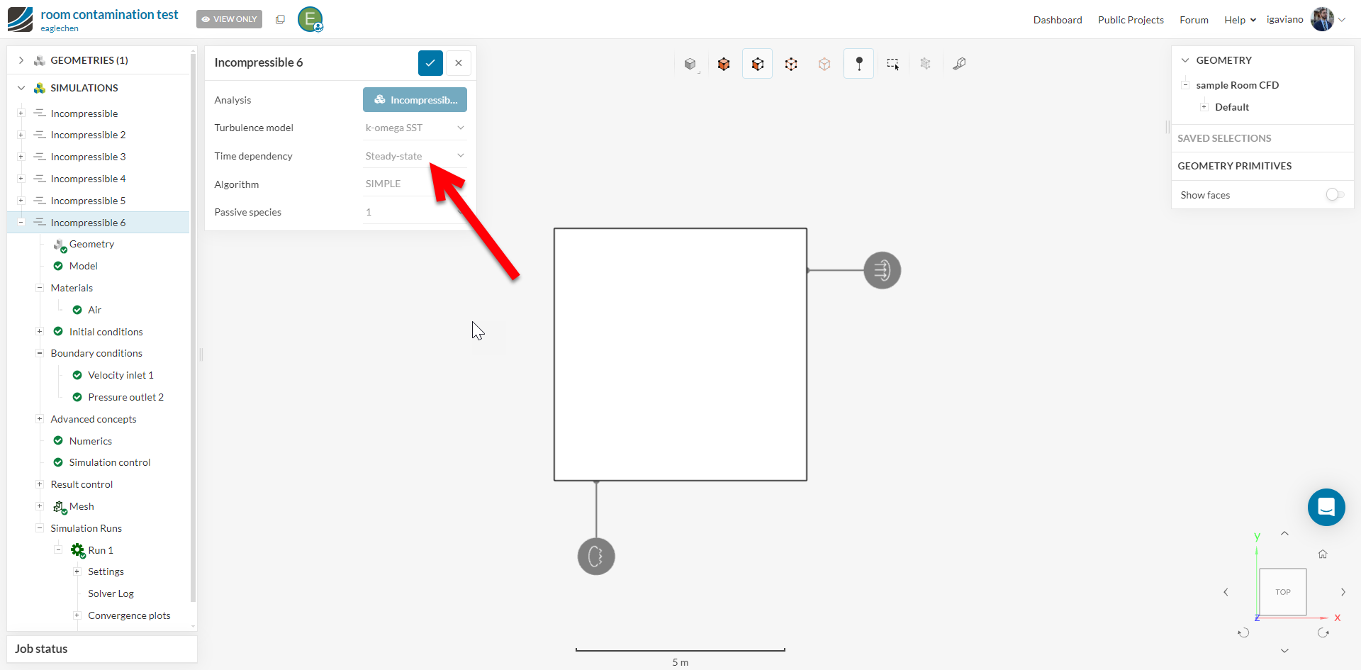 My research involves validating and comparing the diffusion of contaminants (such as Covid particles) in indoor spaces using SimScale.