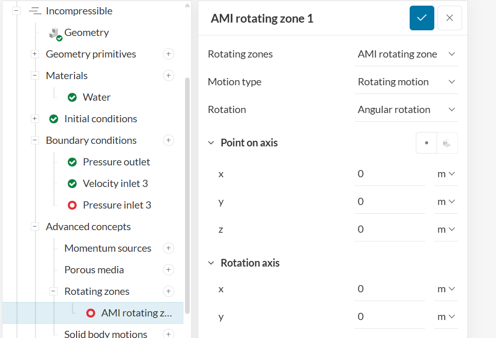 I’m using Incompressible because i cant access multi-purpose. any idea how i can assign my propeller as my own rotating zones? When I want to run my simulation, I am required to input the material of my propeller, but there is no material option available for the propeller. So I tried deleting the propeller body and leaving only the surface, but this ended up being the same as my previous attempt, which caused the water to rotate around the propeller instead of the other way around. I also thought about creating a circular domain, but I couldn’t figure out how to do it.
