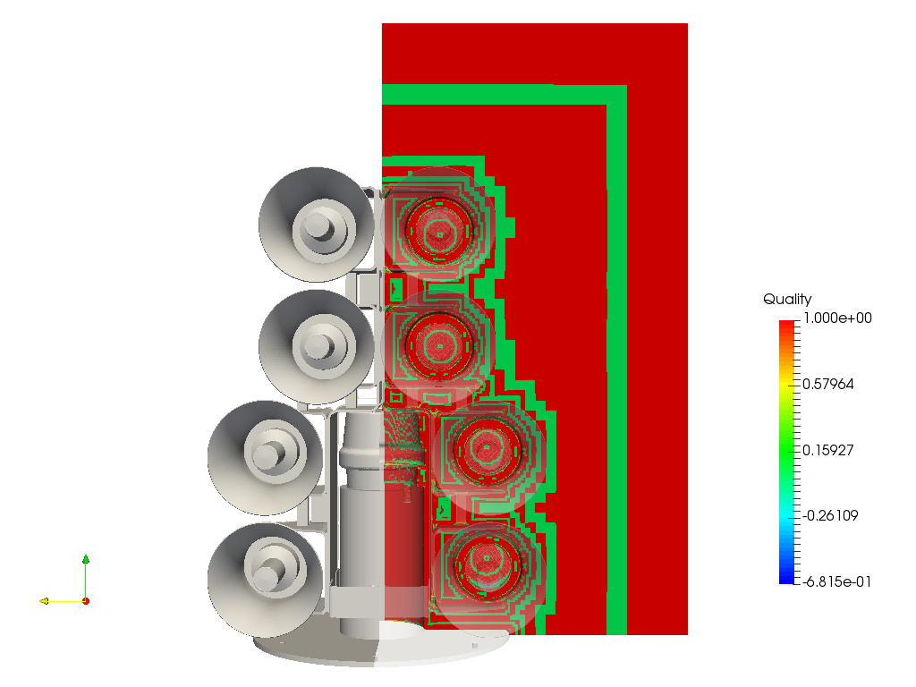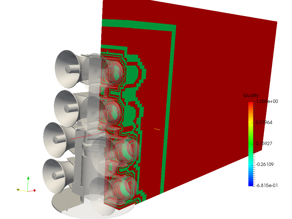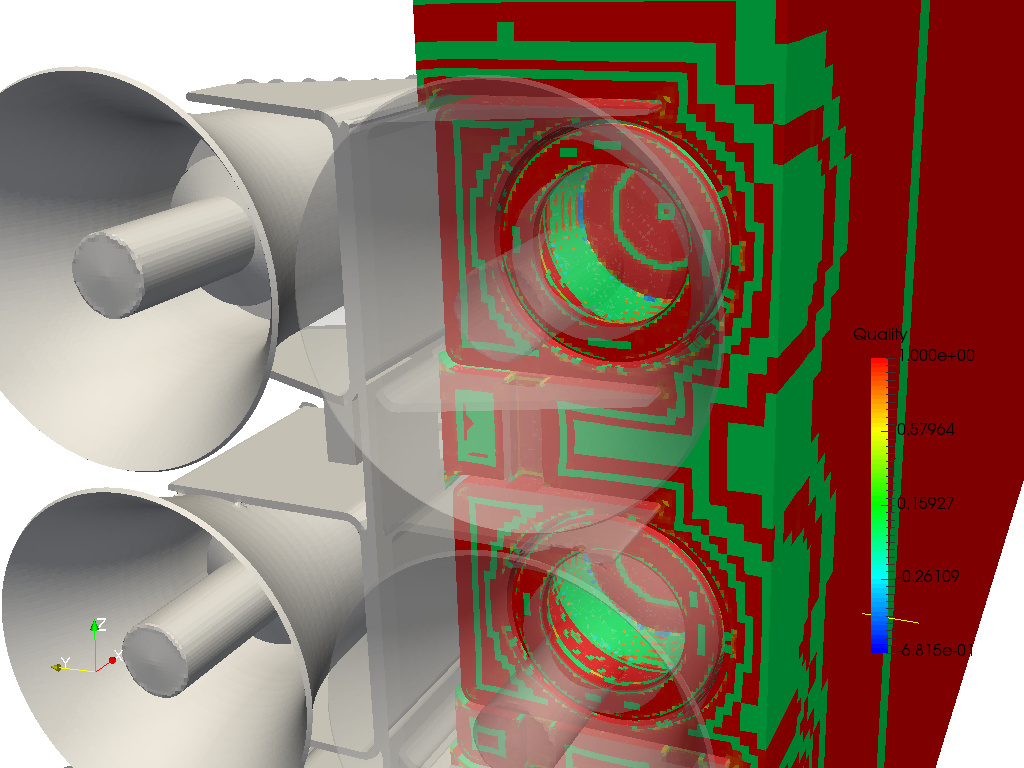 Later, the effects of this wind load over the frame structure is to be studied. As it was my first “big” simulation I was only looking for a “pretty looking” mesh in order to run a fast simulation to get some raw numbers for a first structural simulation. I didn’t check the quality metrics of the mesh till now… And this is what I found!