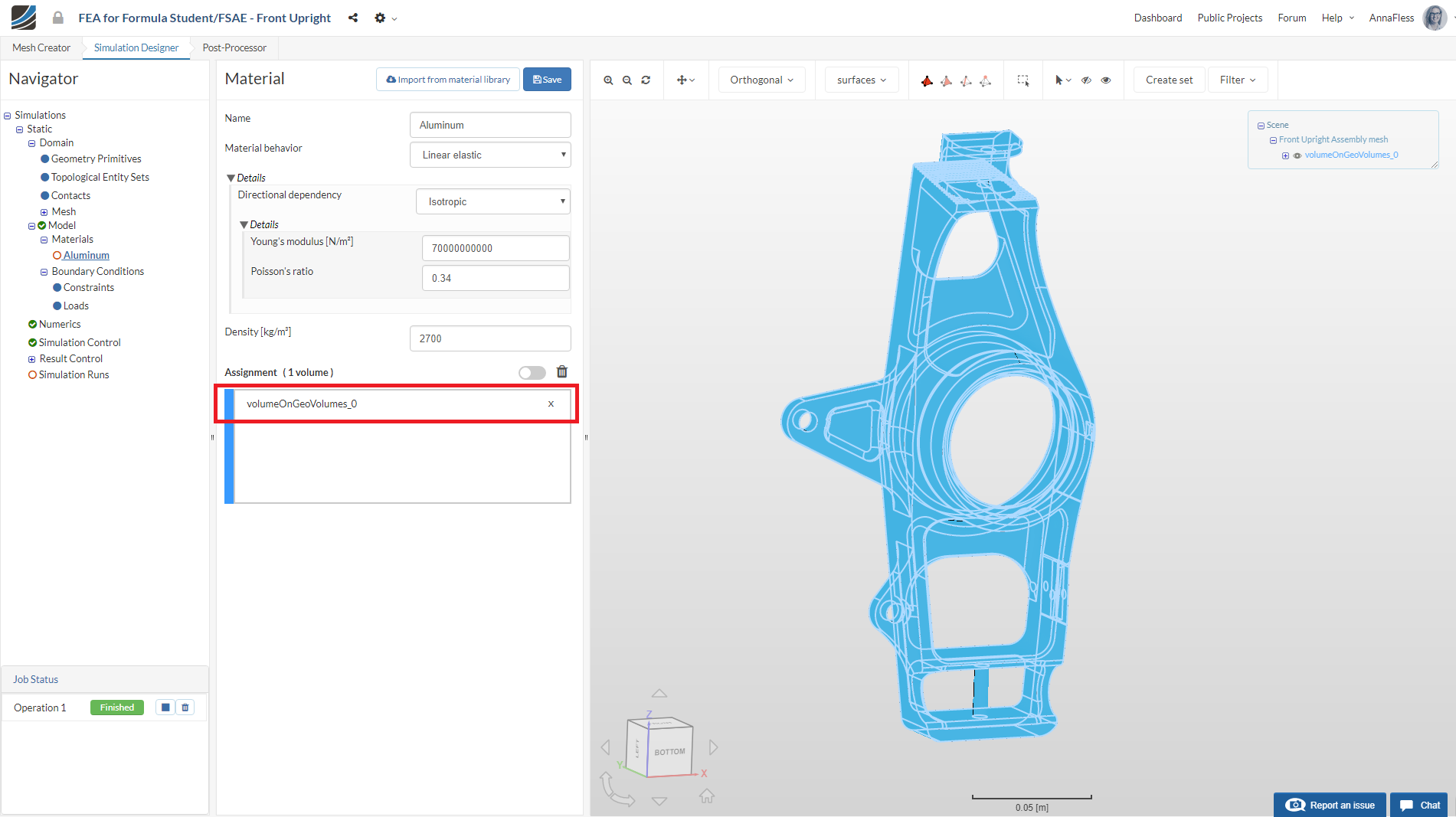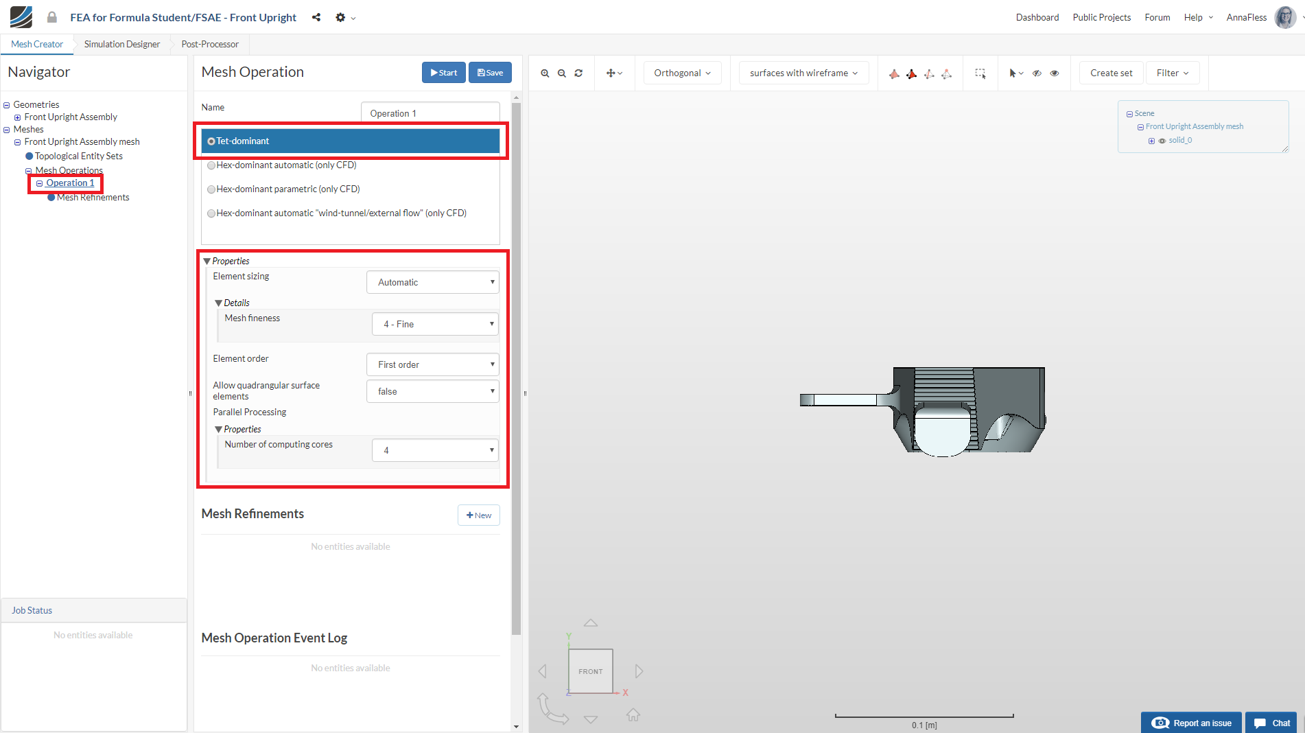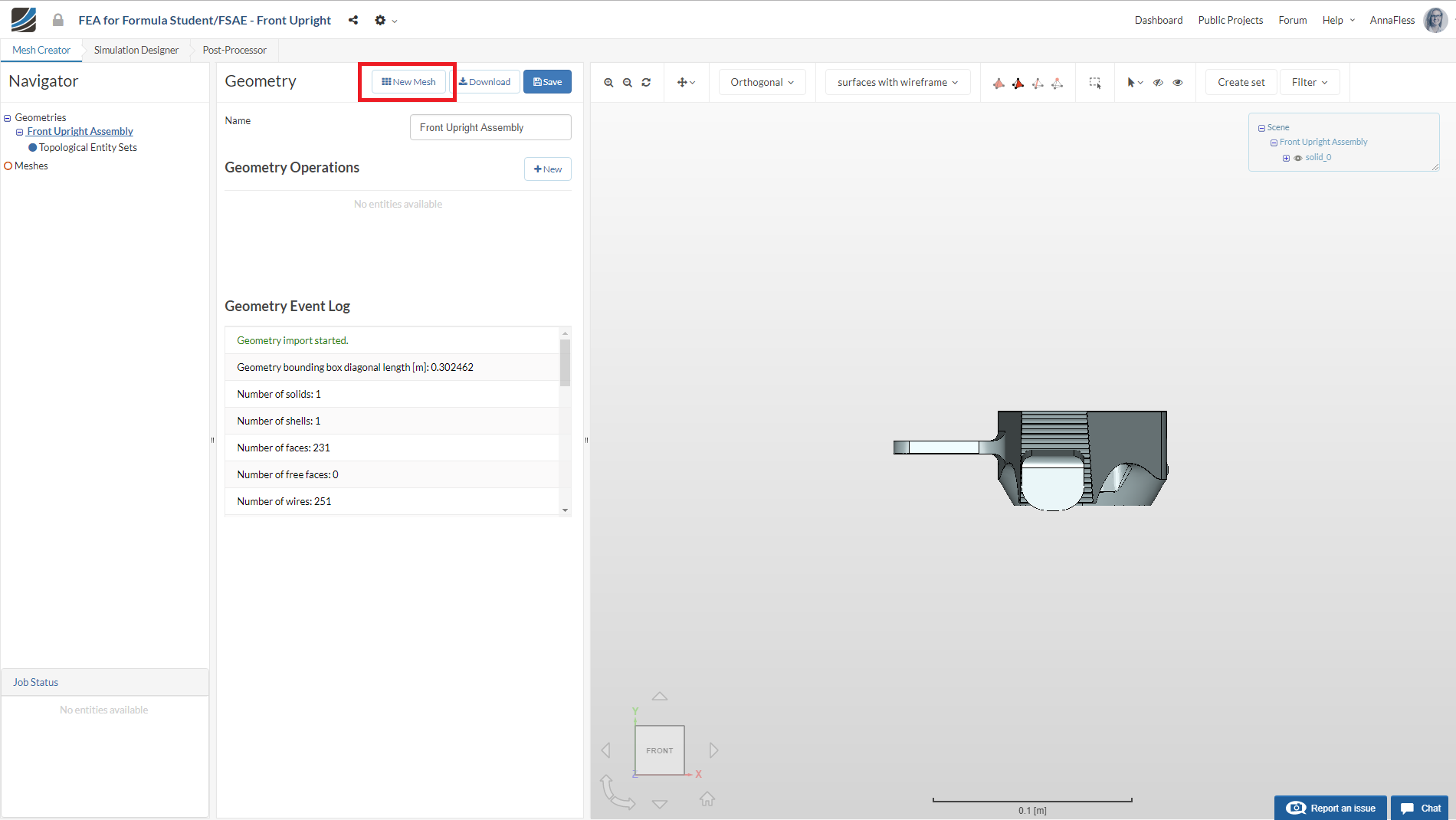 In the Mesh Creator tab, click on the geometry Front Upright Assembly
