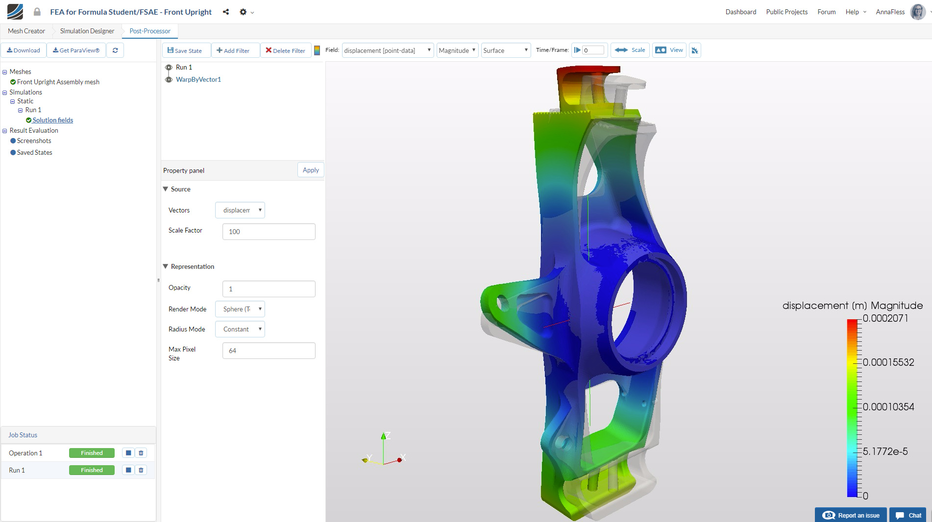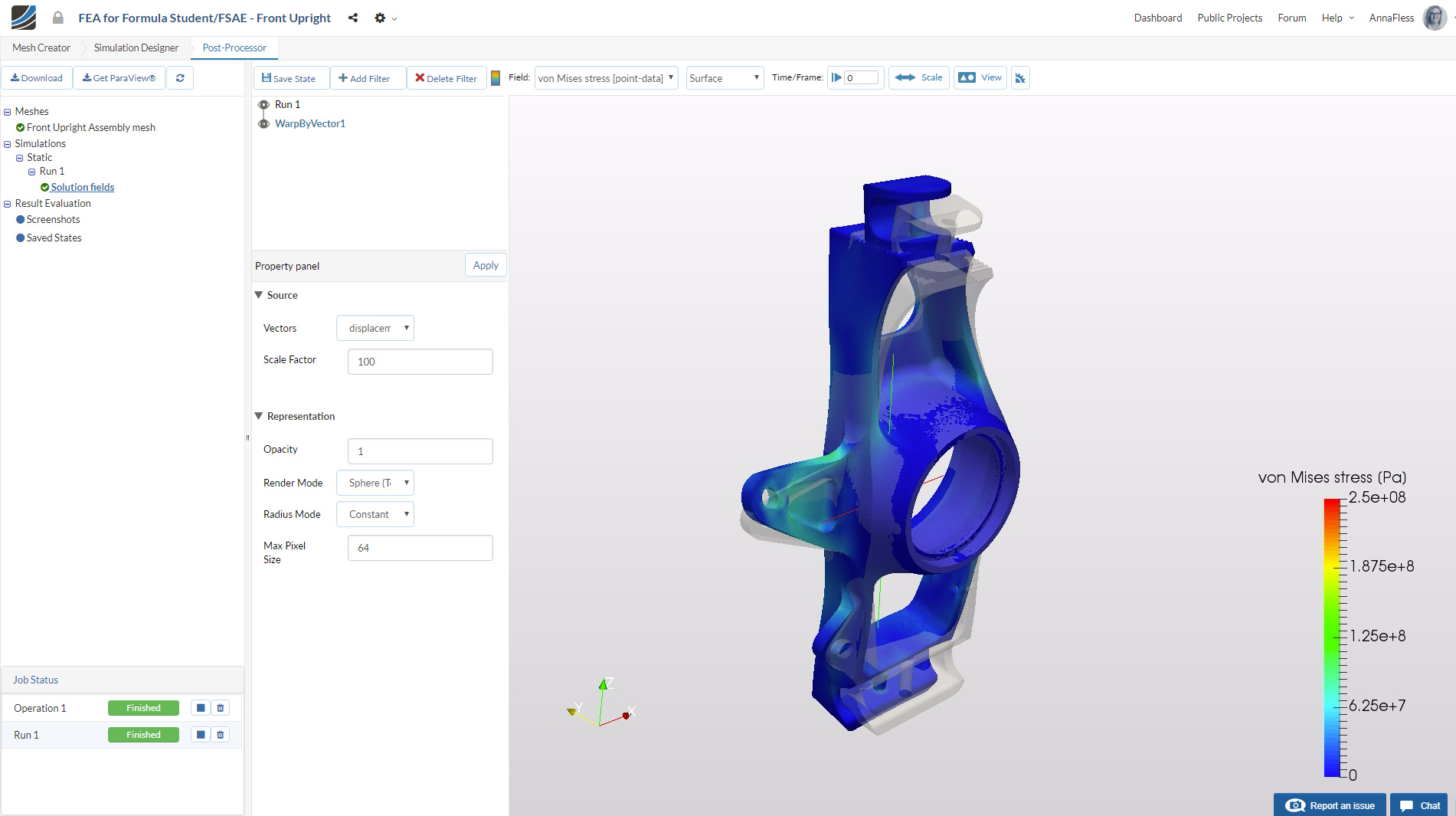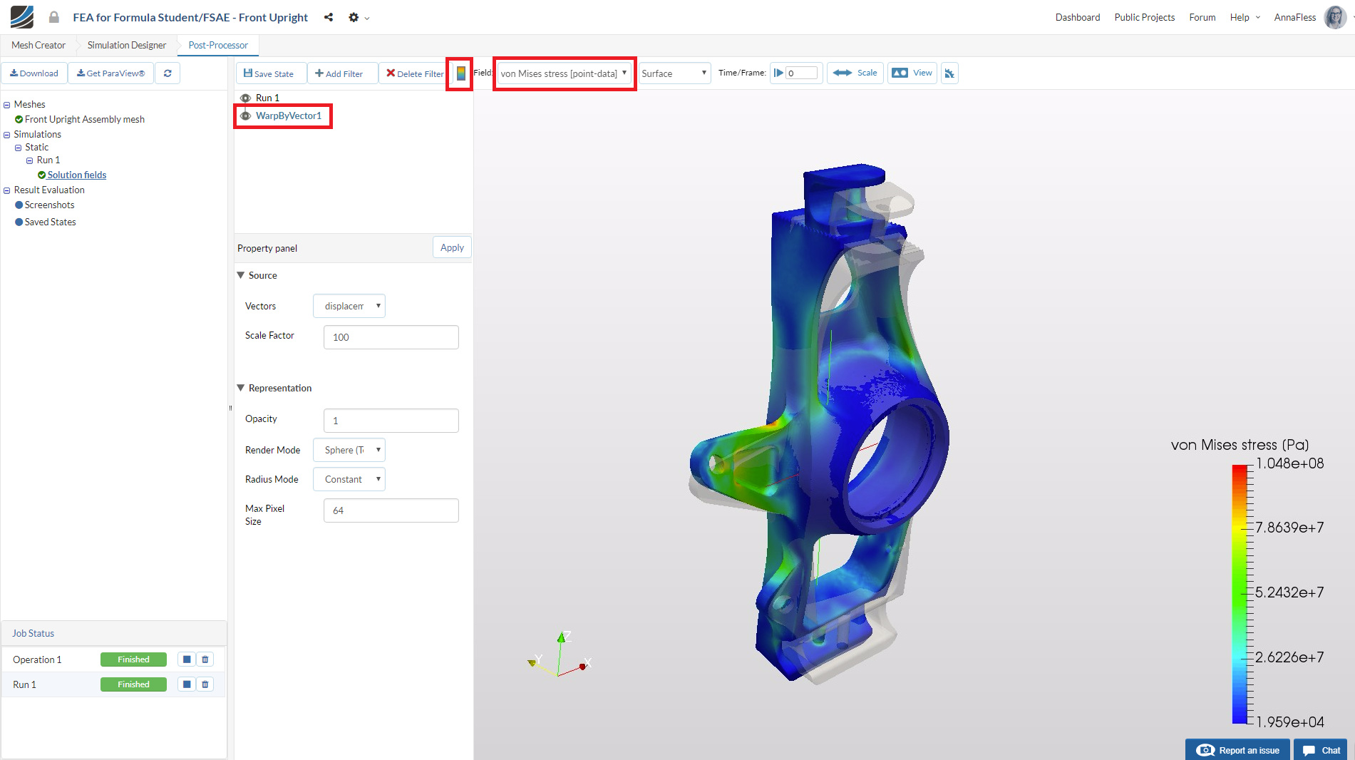Similarly, you can change the fields in the viewer to view the displacements, strain, etc.