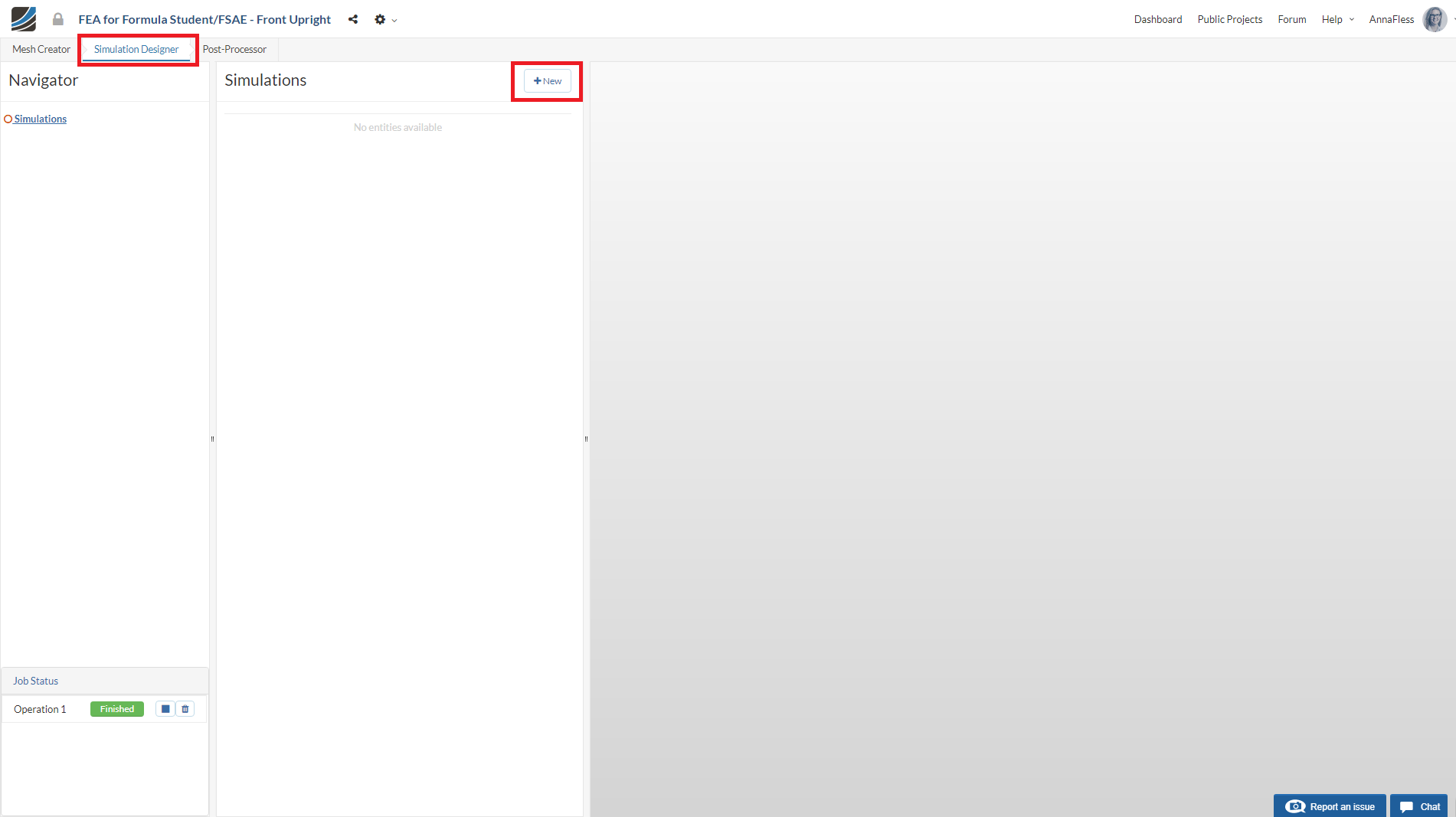 For setting up the simulation switch to the Simulation Designer tab and select New simulation.