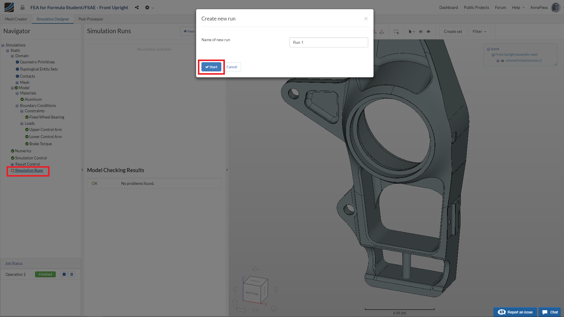 The final step is to click Start. Your simulation is now computing in the cloud.