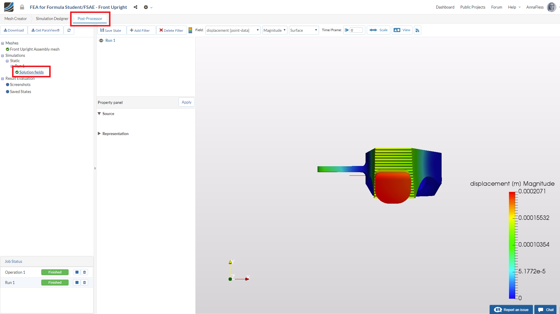 Once the simulation is finished (this will take about 4 minutes), go to the Post-processor tab to view the results.
