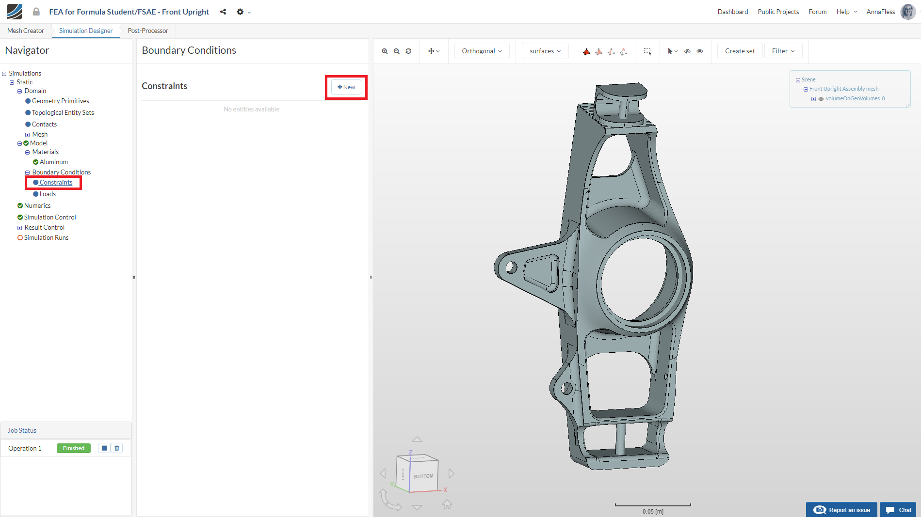 Let’s first define the fixation. Select Constraints in the tree and click New.