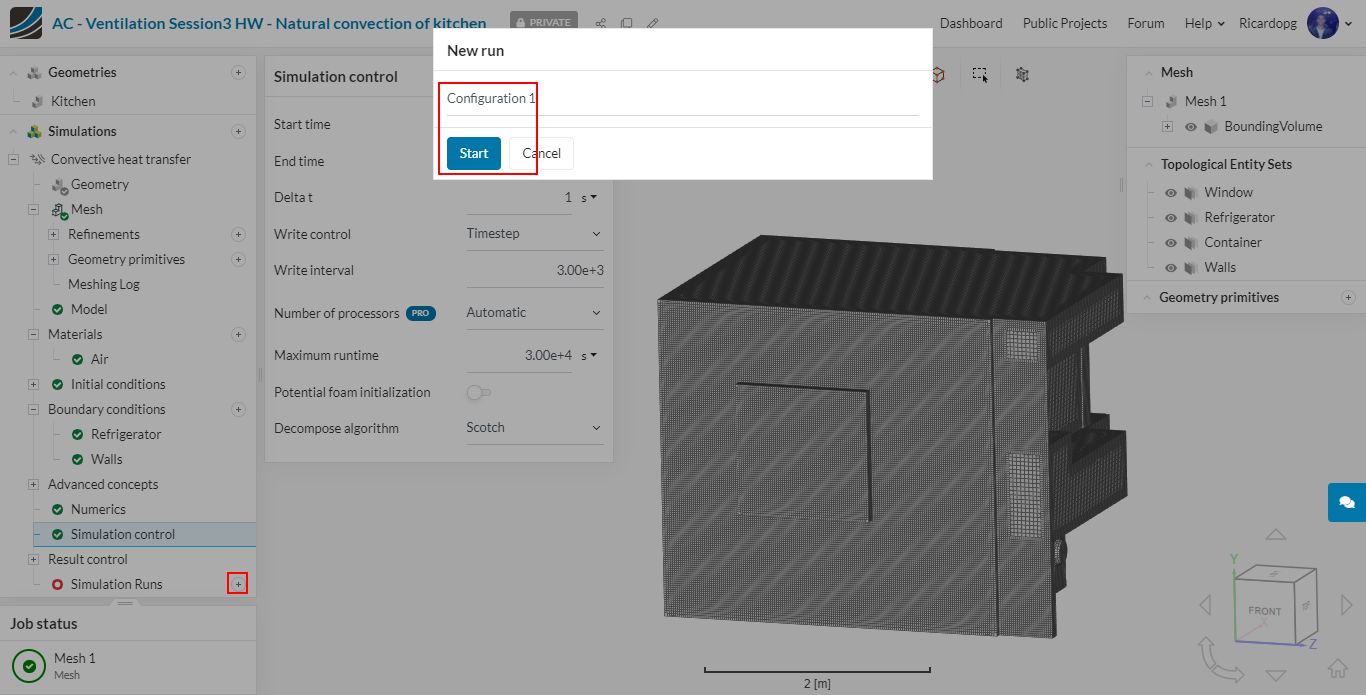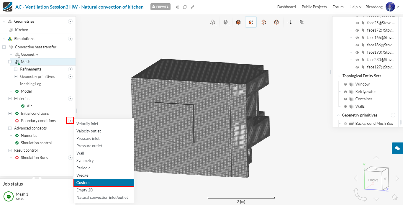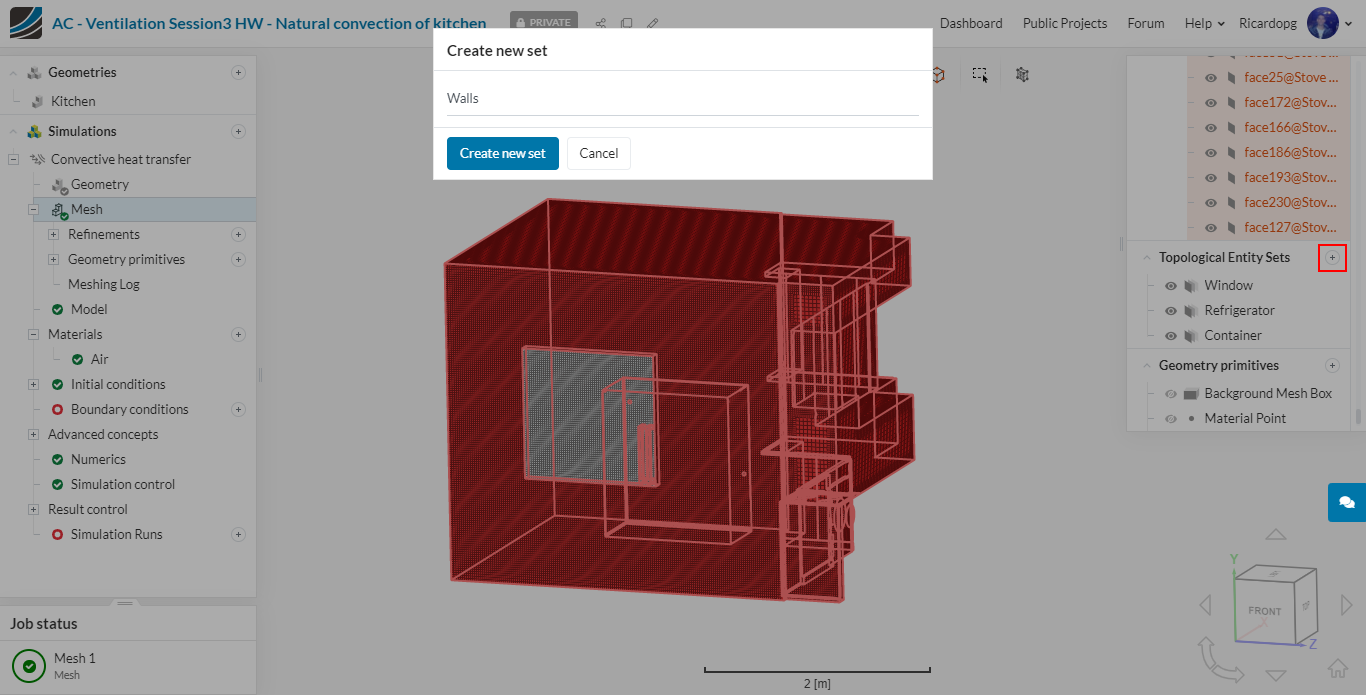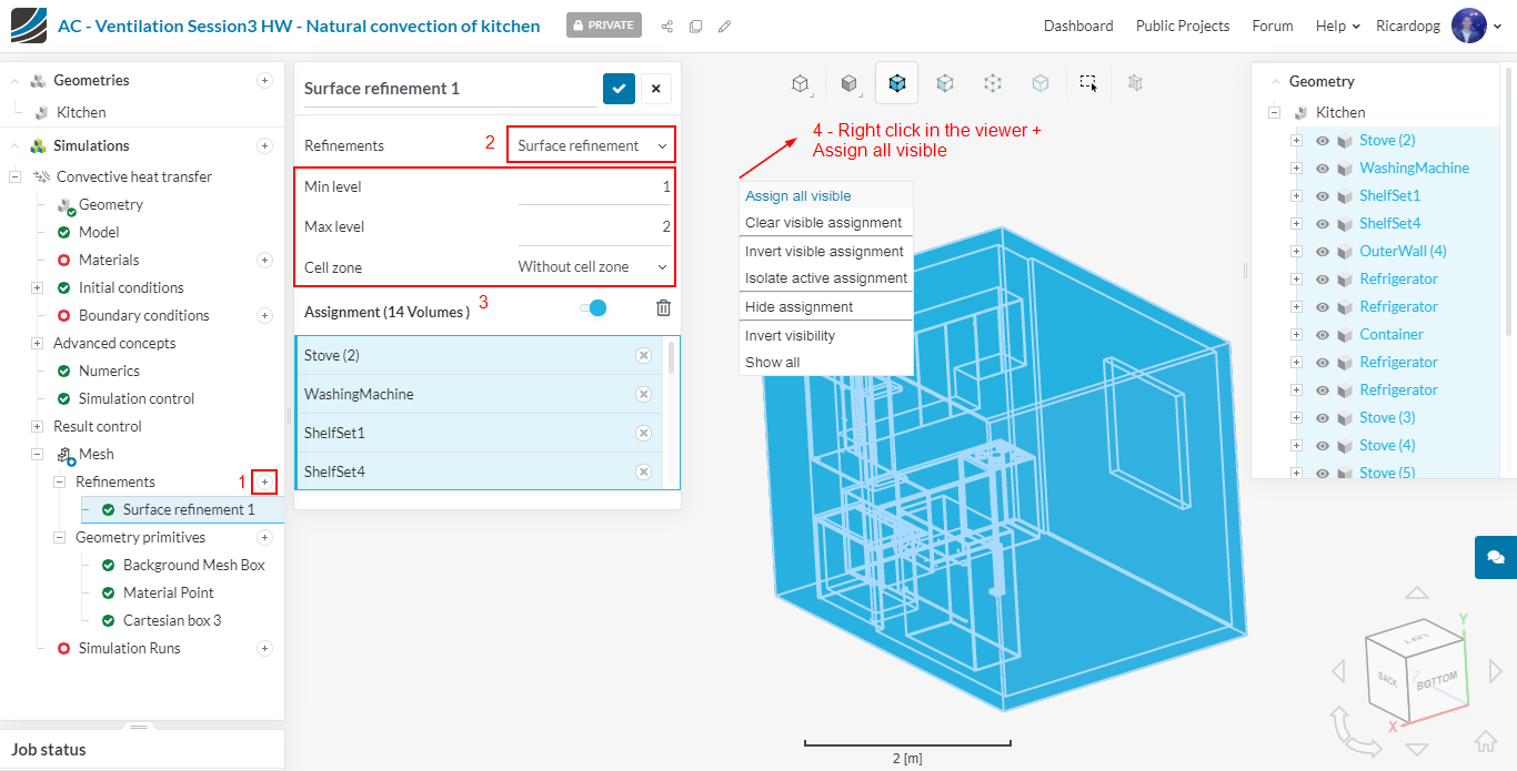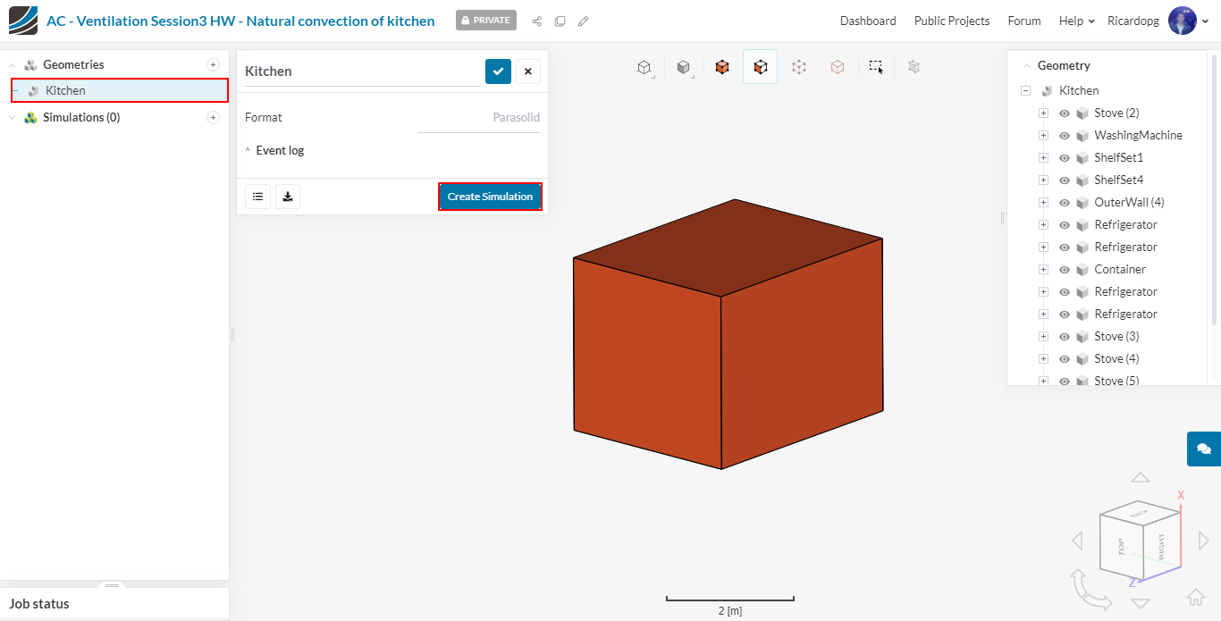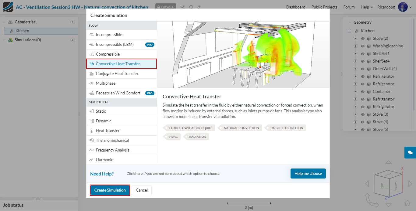 In the left-hand side panel, select the newly imported geometry Kitchen and click on Create Simulation.