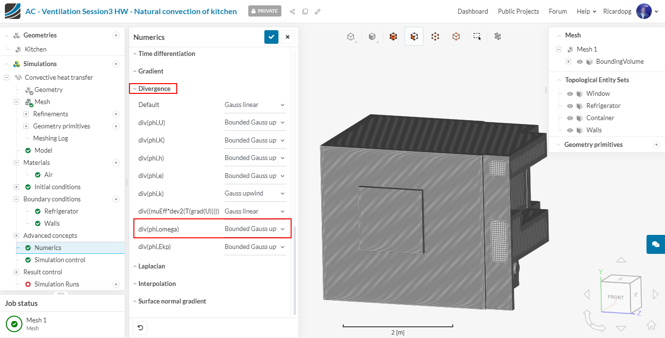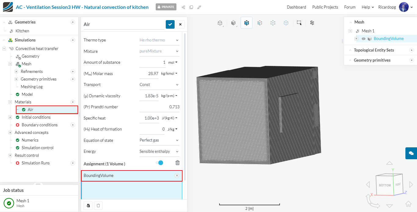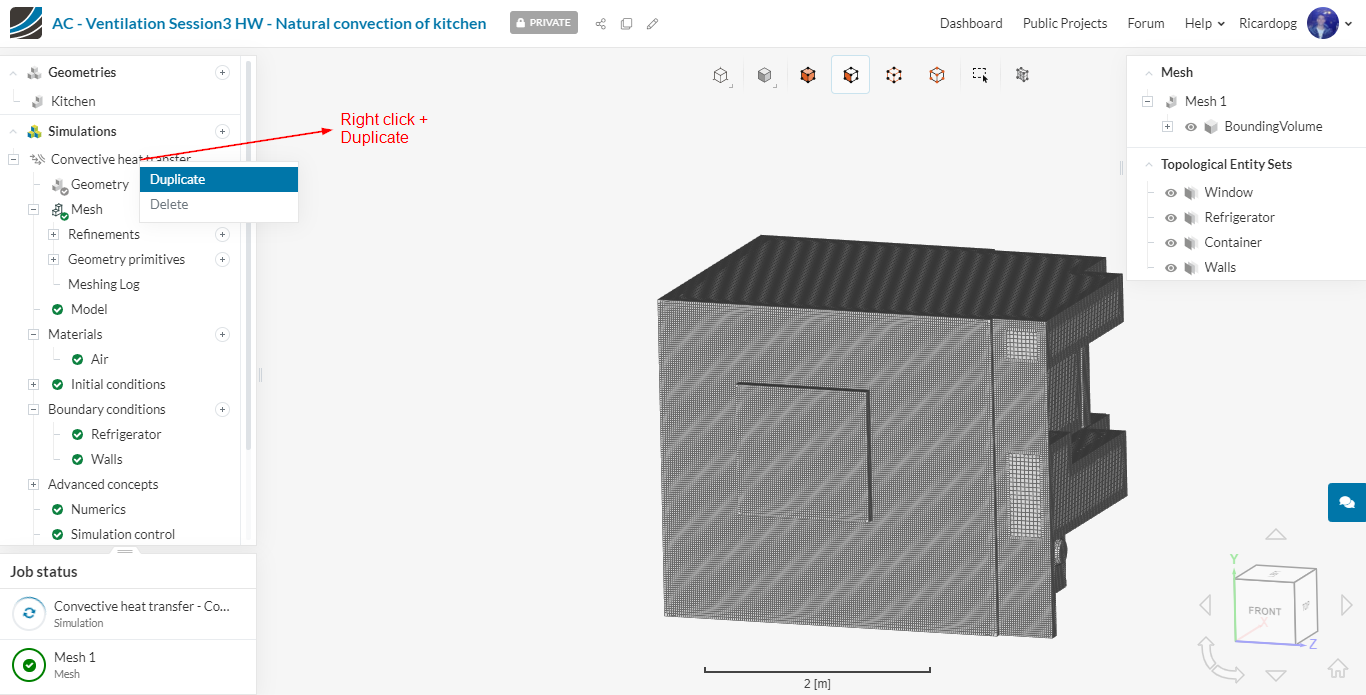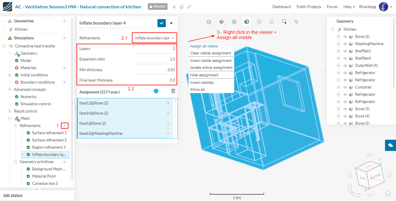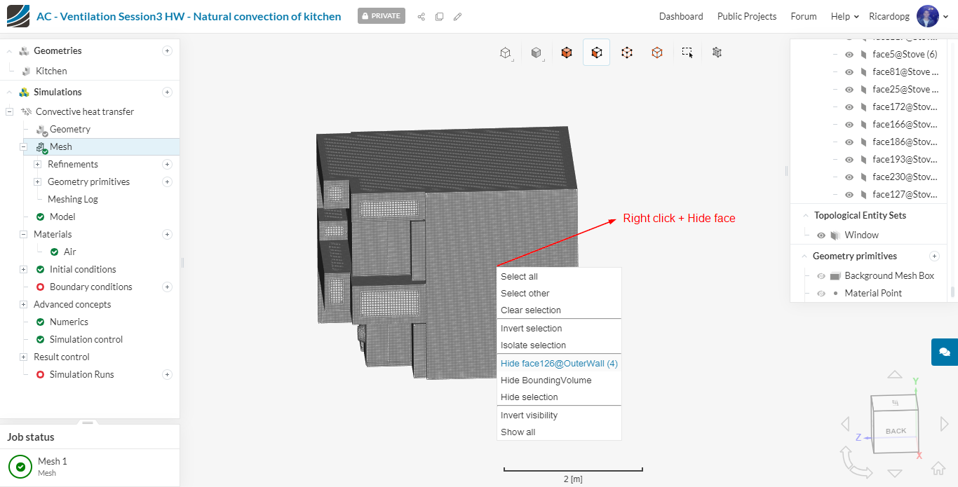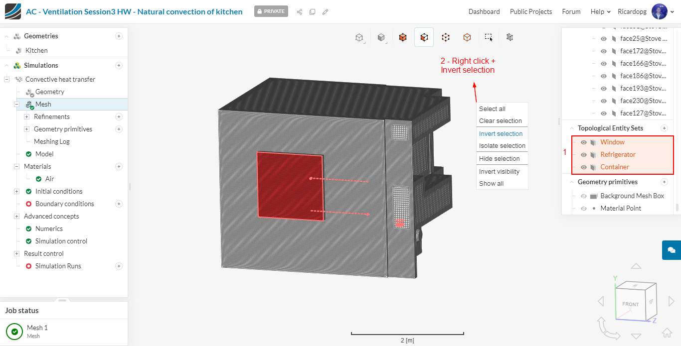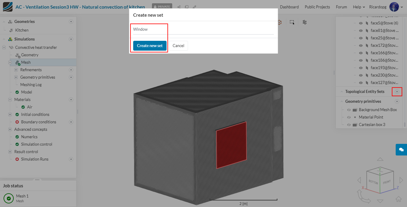 In the left-hand side panel, select the newly imported geometry Kitchen and click on Create Simulation.