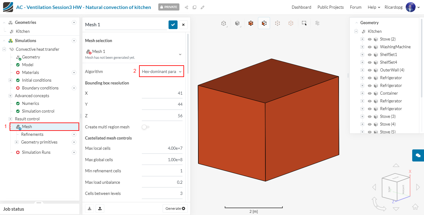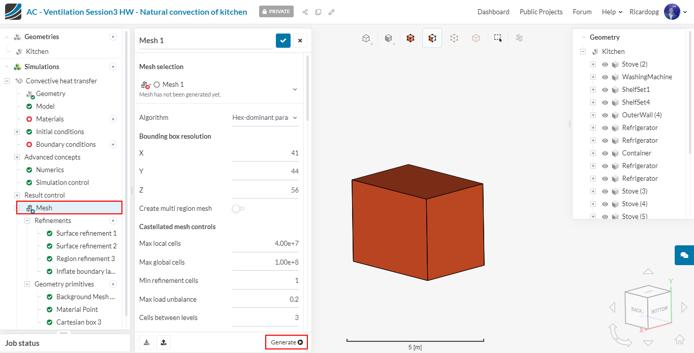 Now please go back to Mesh and run the operation by clicking on Generate. The number of processors is chosen automatically to optimize core hours usage.
