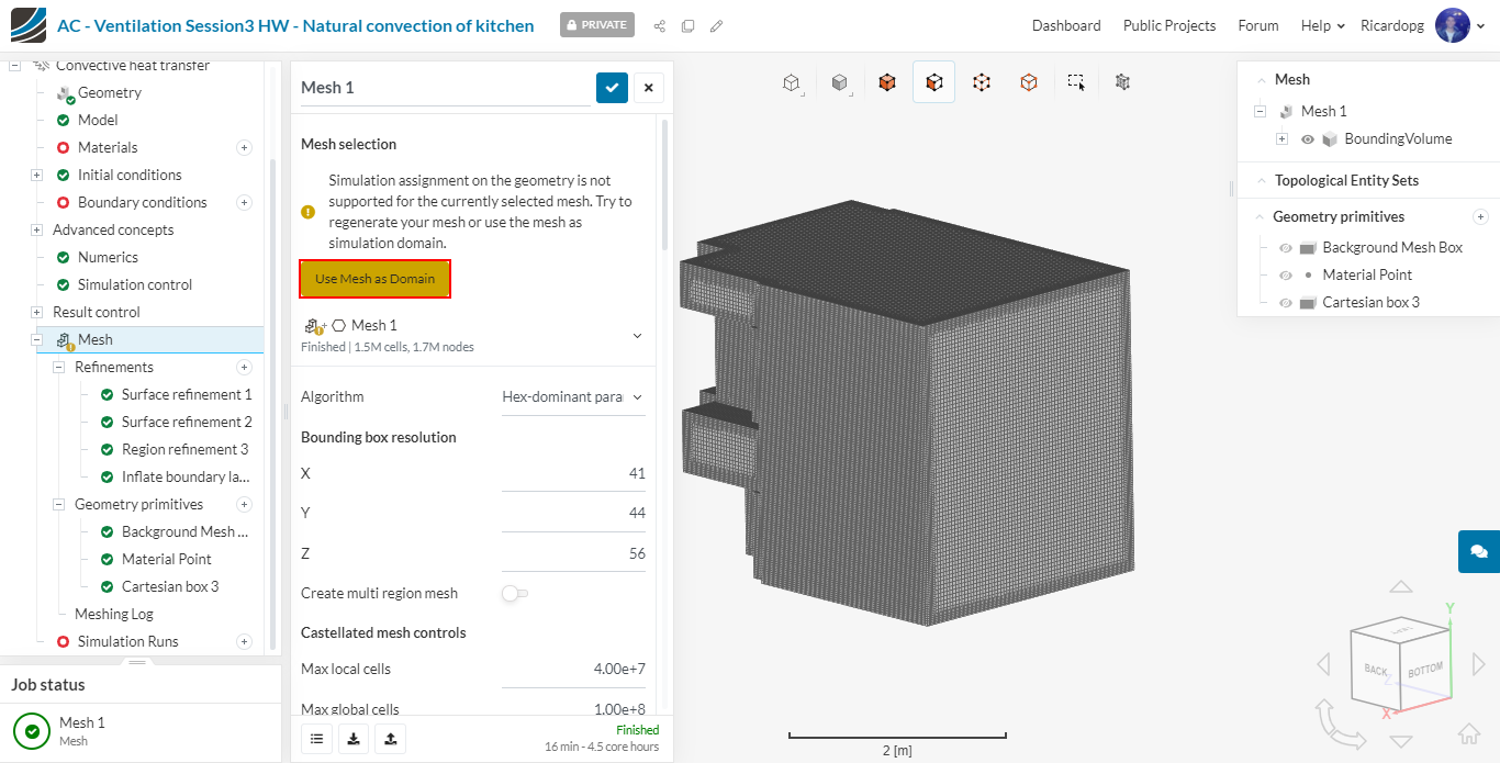 The meshing operation takes about 16 minutes to finish. Once the mesh is ready, make sure to click on Use Mesh as Domain.