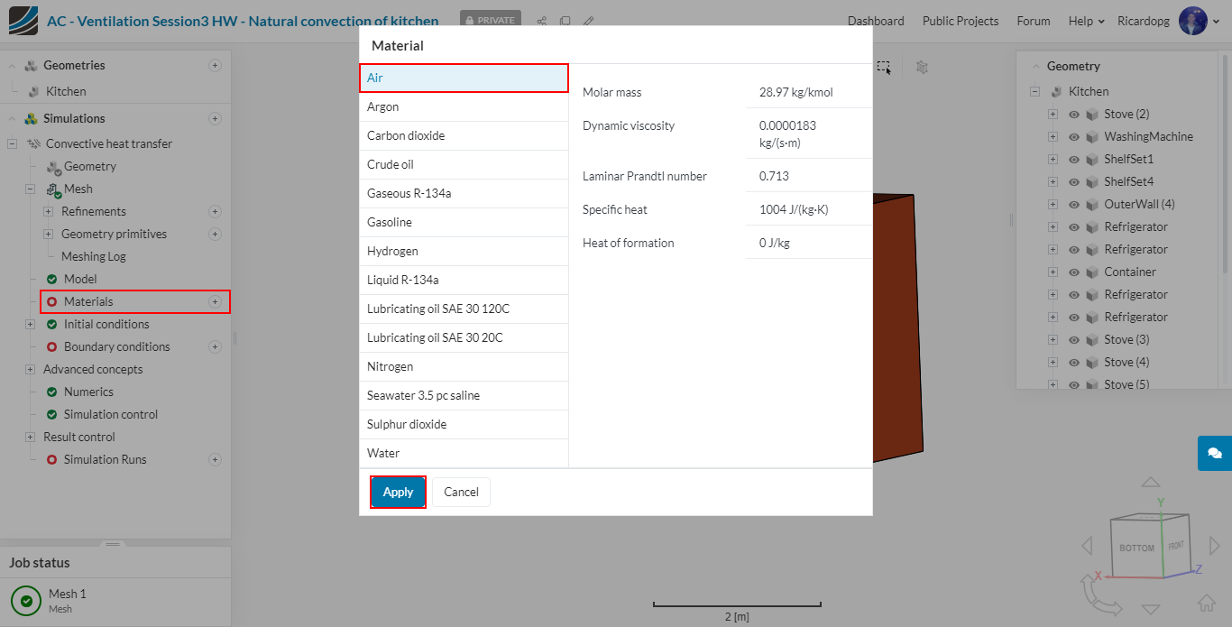 In Materials, select Air and click on Apply. It will be automatically assigned to the flow region.