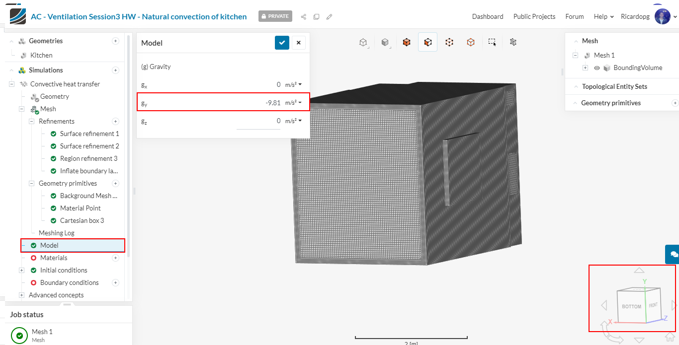 We can configure the rest of the entries now. First, starting with Model, please input -9.81 m/s² as gravity in the y direction.