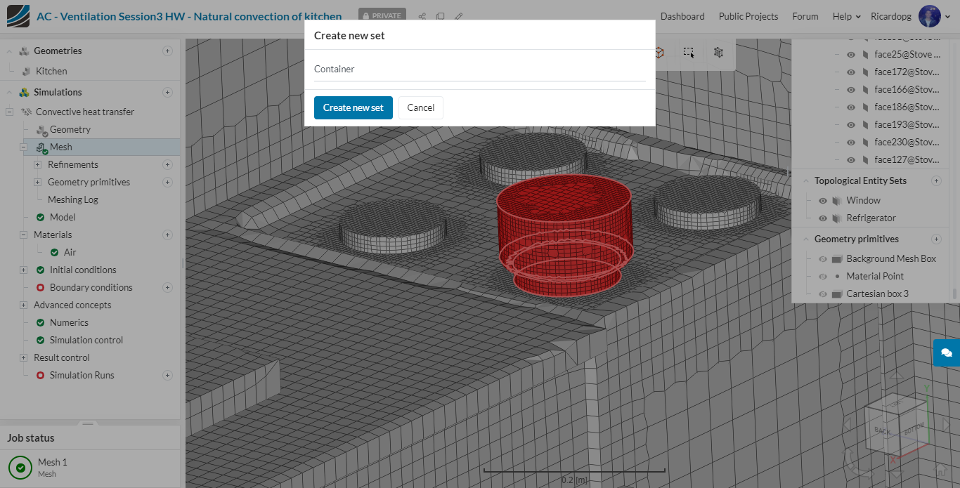 Now, on top of the oven, there will be a container, consisting of 4 faces in total. Please select all of them and create a Container topological entity set: