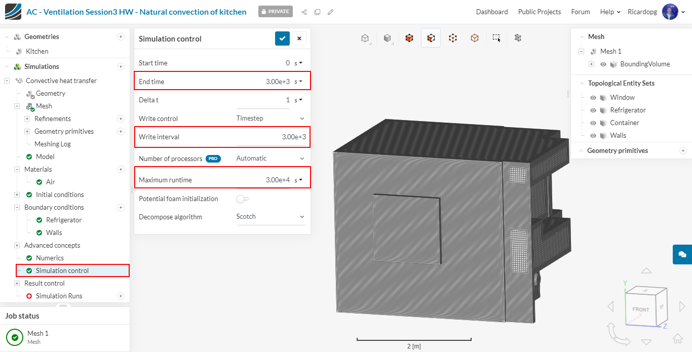In Simulation control, change End time and Write interval to 3000 iterations. Also change Maximum runtime to 30000 seconds.