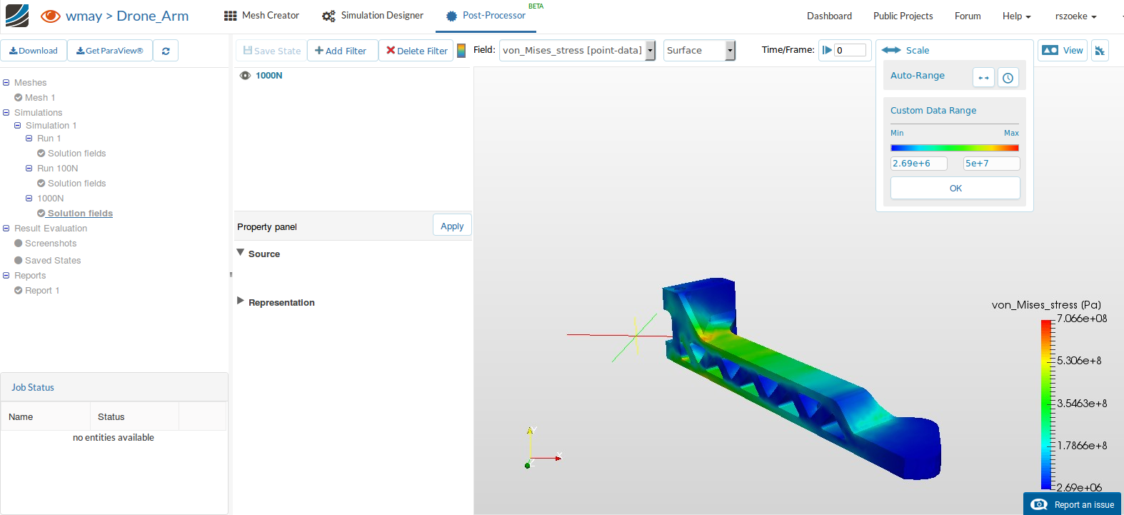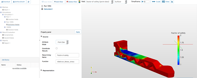 You could also use a calculator filter to compute directly the factor of safety (yield stress/ von Mises stress). For values below 1 the part would “break”: