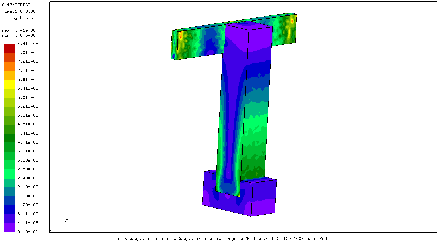 So I made a simple geometry where Cuboid represents teeth and the plate represents the Aligner. In the geometry itself i penetrated the plate geometry into the cuboid so that after giving contact it would push back the cuboid and I would get the stress at the base part as shown in the picture. I ran this model in Calculix and I got the results which is shown in the same picture. I tried this on Simscale and I gave penalization contact between those faces and kept a high pressure overclosure constant and it gave some result -Column,100,10,0.1 by swa | SimScale. I tried to do this in code Aster but its not giving me any result. I gave a Continuous Contact with penalization but no legends of stress. Link to the input files-https://drive.google.com/file/d/1Df6lWIpKoI-MWY2jqtN6SLqjO83bancq/view?usp=sharing