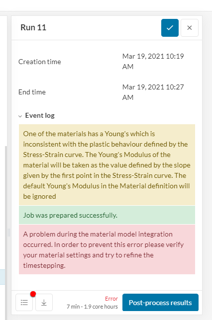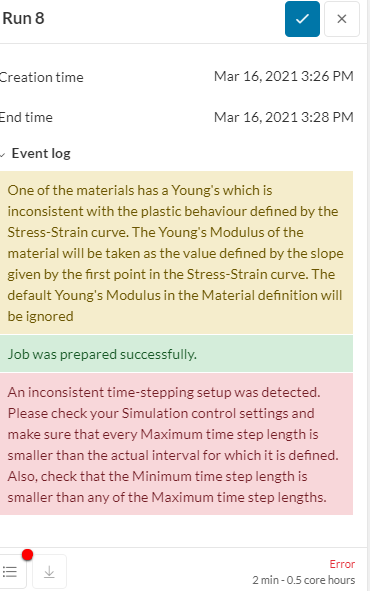 im trying to simulate an impact attenuator hitting a rigid wall at 7m/s , i need to have a total running time of 0.125s with 0.0125 time steps but im not sure what to put in the simulation controls in order to achieve this. any help would be much appreciated.