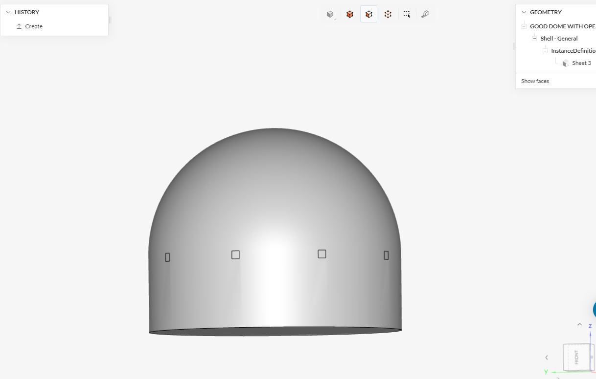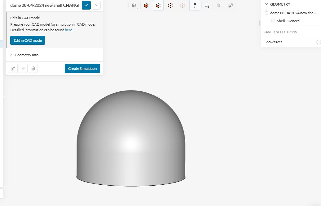 The model should be exported from Rhino as a single closed polysurface, representing the fluid domain. So you’re not really interested in the solid walls of the dome, but instead you are interested in capturing the fluid region inside of the building. You won’t need to go into CAD mode at all if you import a correctly constructed CAD model from Rhino.