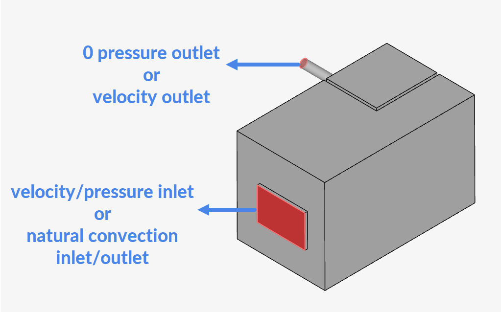 - To set the window as a natural convection inlet/outlet and the exhaust duct (again) as a velocity or 0 pressure outlet