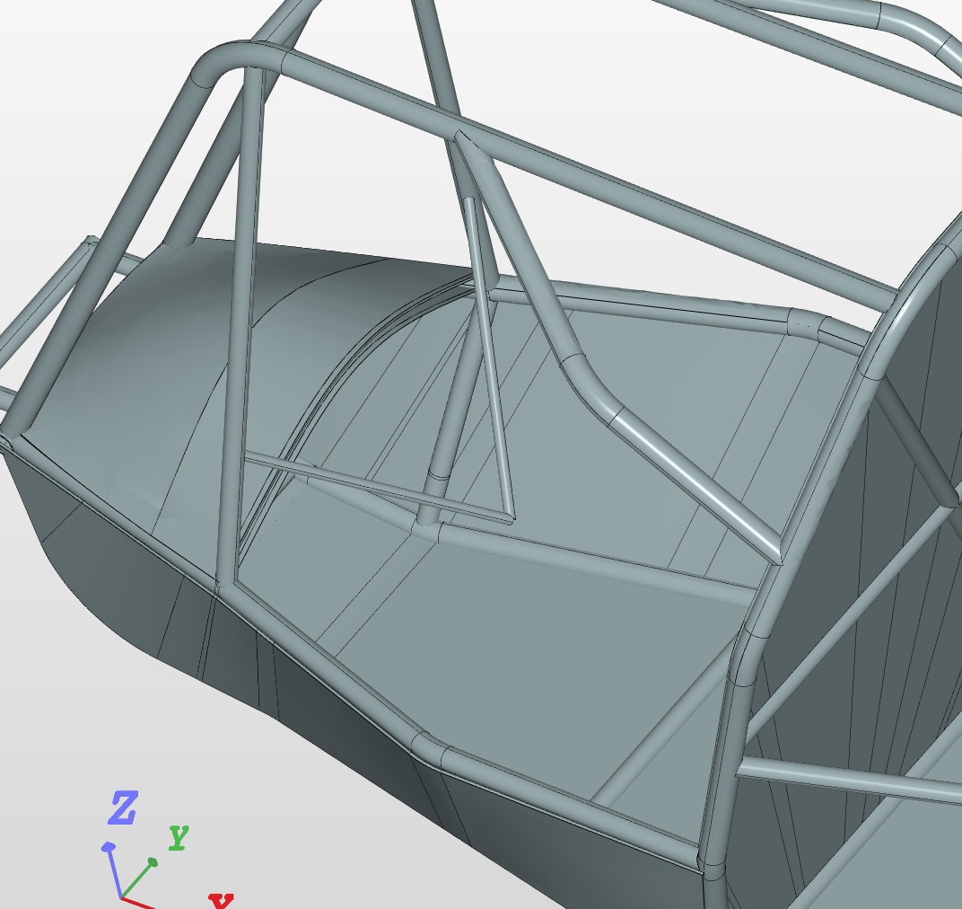 See how the nose is one solid, the bars are just solid representations and the shell between the bars dont have any gaps between them and the bars. A representation like this will be very close to detailed geometry but with less computational requirments and more importantly, beter stability (it isnt having to resolve down to air flowing withing the car.