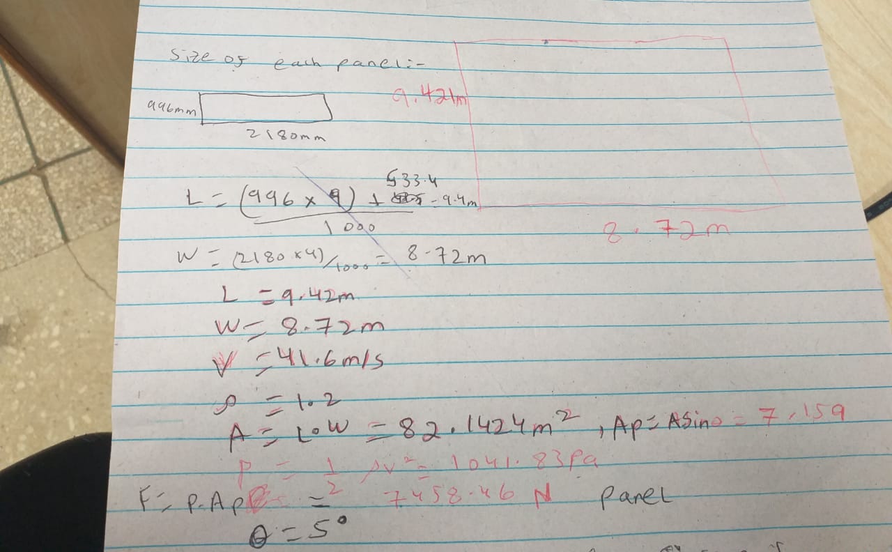 @BenLewis one more thing, The frame width that I am getting is 8967.75 however the frame length that I am getting is 9458.82mm and you have marked 1143.62 mm so there is a huge difference of 8315.2 mm in our frame lengths. I am not getting which length are you considering. One more thing that I wanted to ask is that why didnt you take the effect of sin theta. i.e sin(5)?