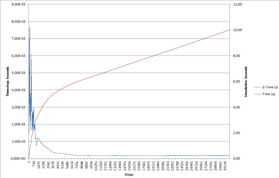I made a chart, with the delta t of each time step and the runtime.
