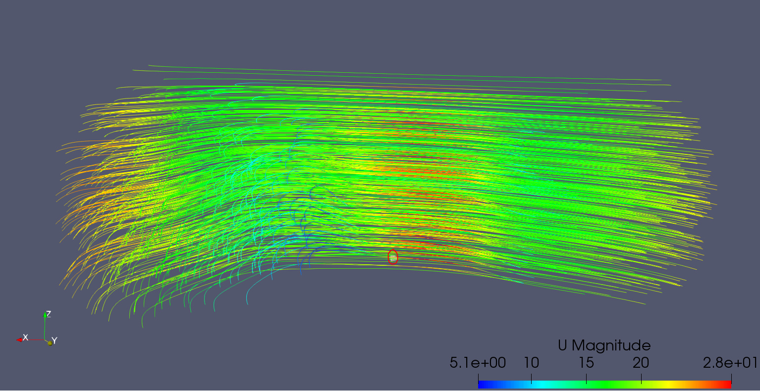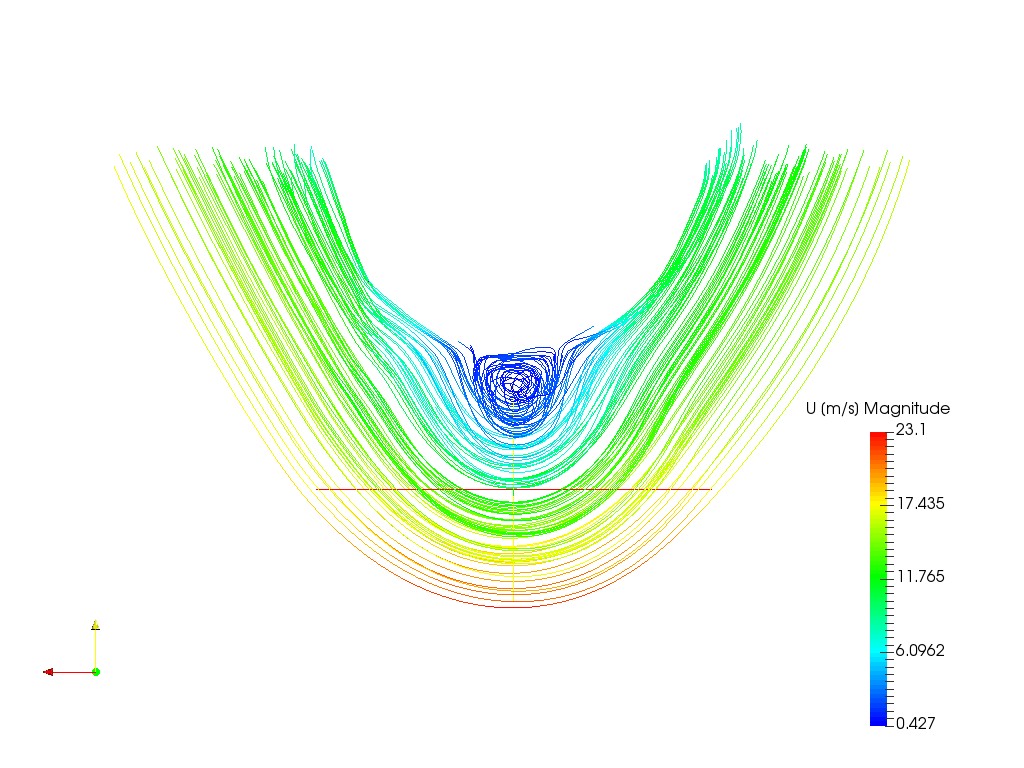 Based on the total pressure contour for the nose, it seems that the curvature of the flow was achieved. However, no wake is visible in post-processing. (u magnidude contour)