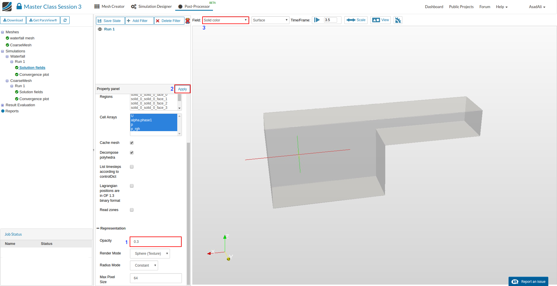 - Click on the eye sign next to the “Run 1” item to show the domain.