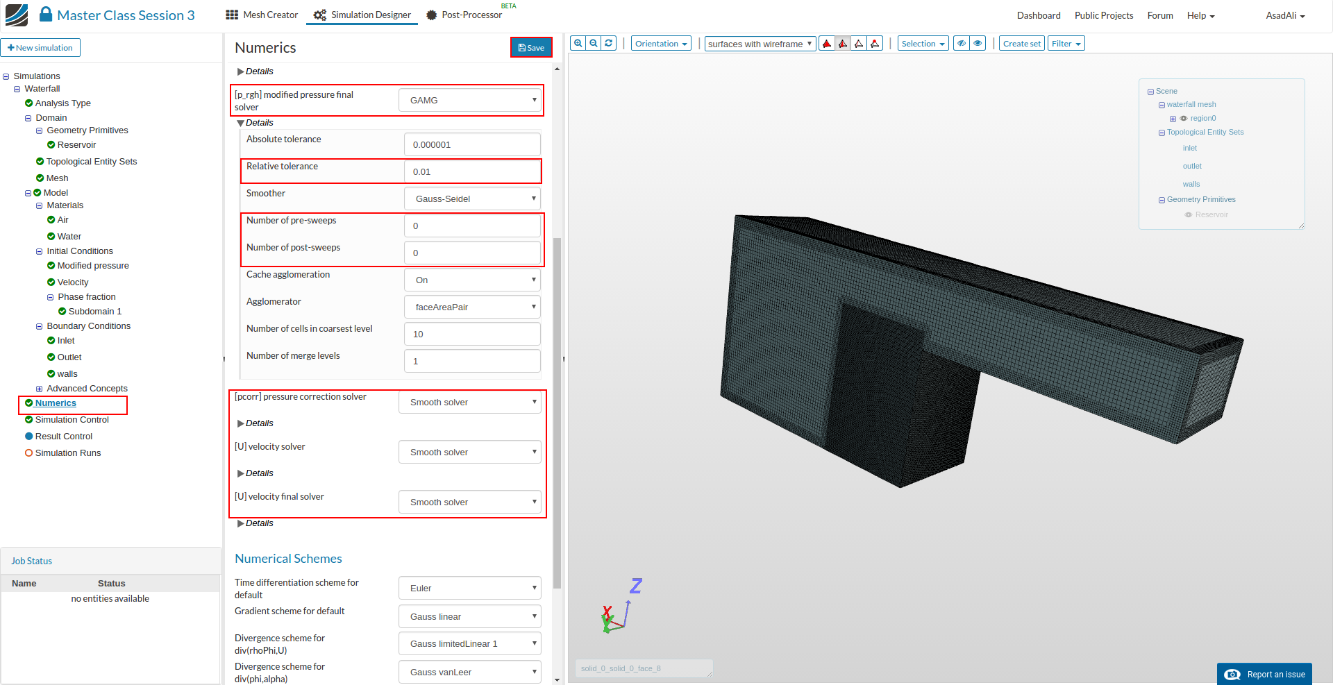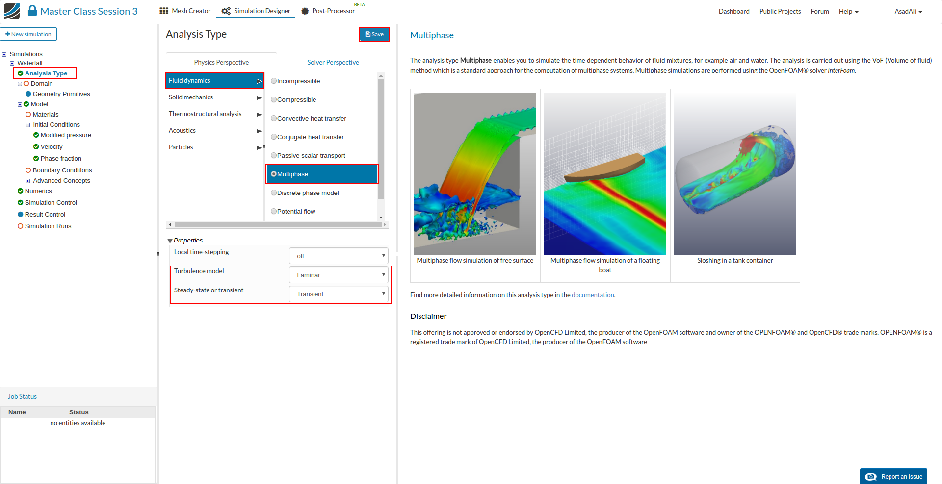 We will be doing a multiphase simulation for this task. Note that these simulations are transient in nature and will take longer to converge. Thus for these types of simulations, selecting the right Courant number is very crucial.