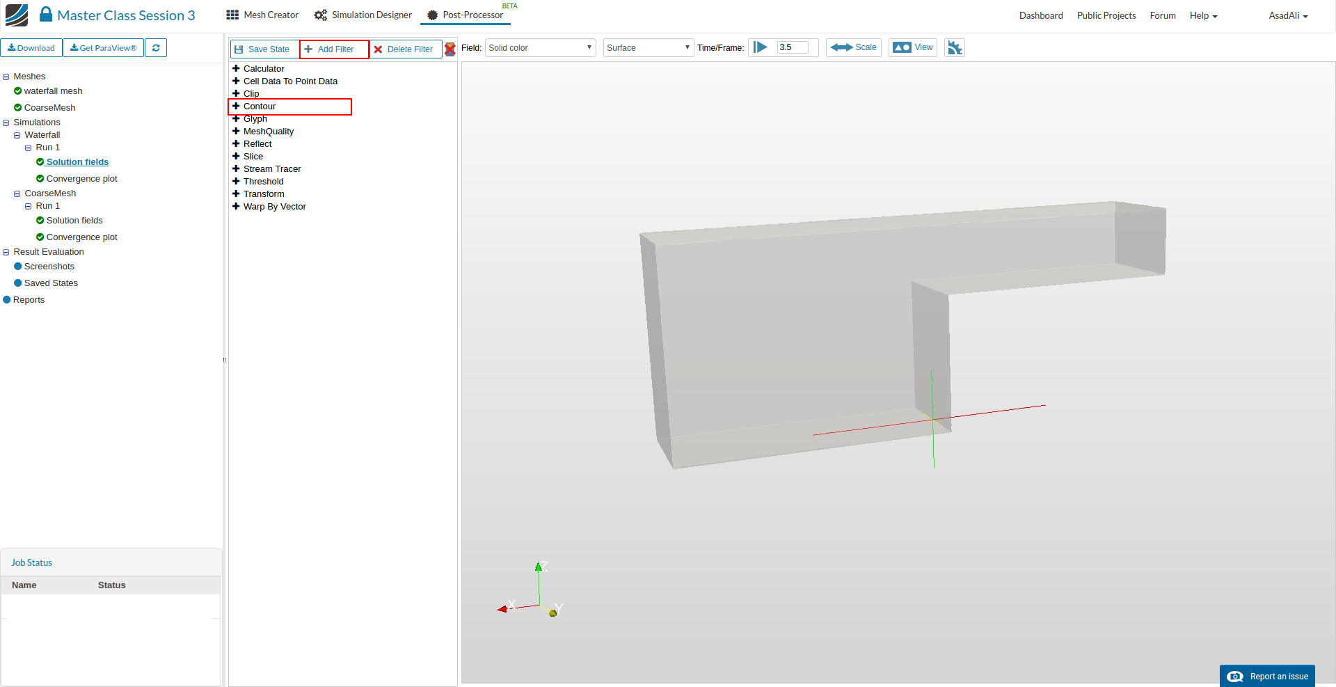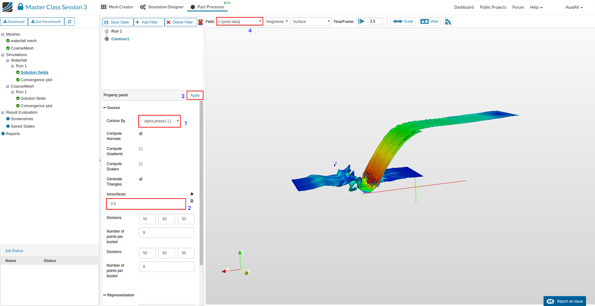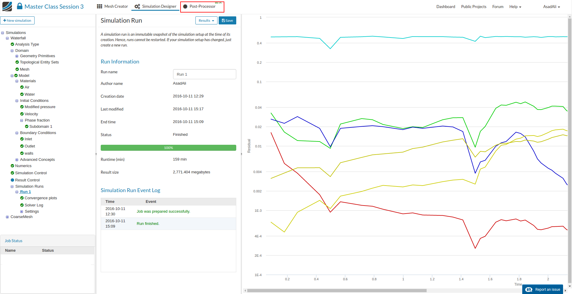 - Once the simulation is complete, move to the Post-Processor tab.